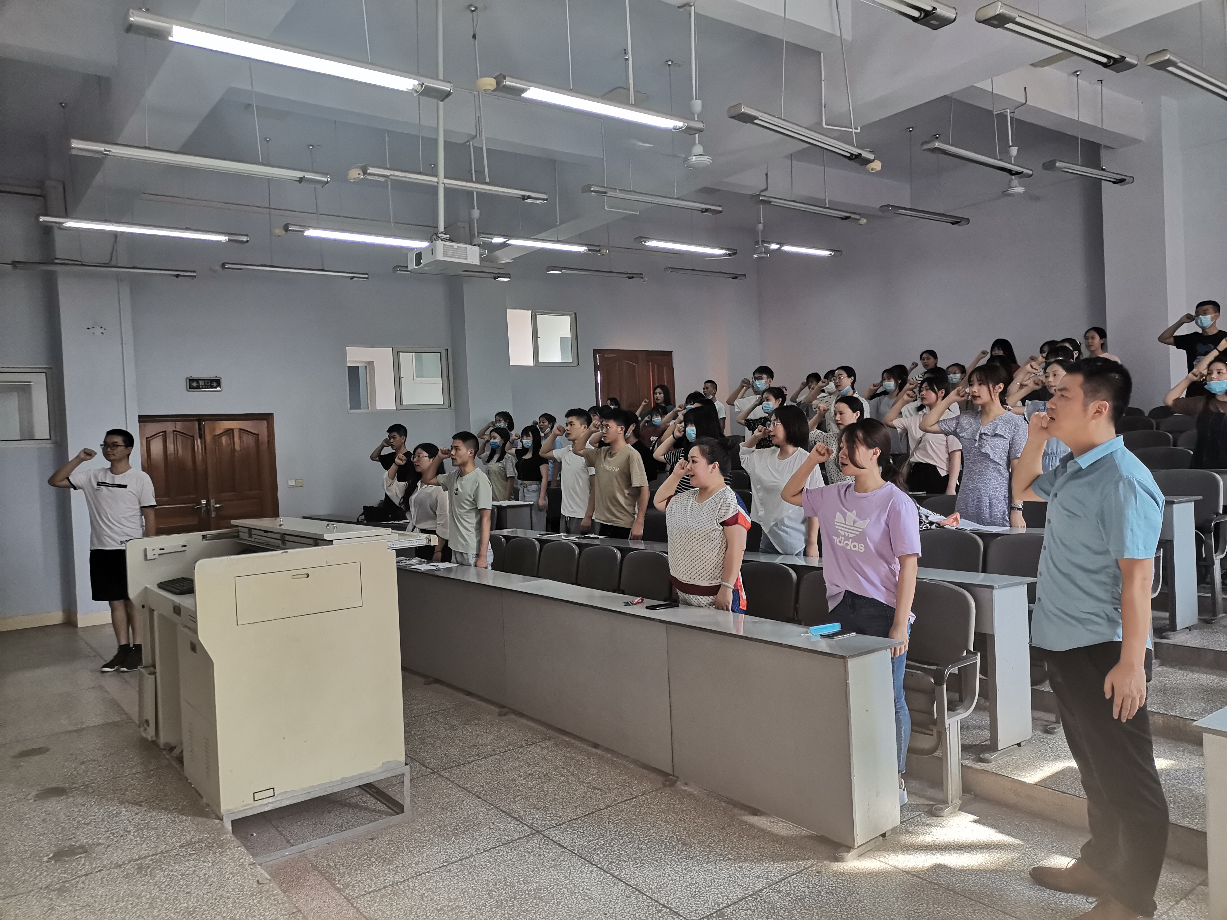 为讴歌党的丰功伟绩,传承党的优良传统,弘扬主旋律,传递正能量,尤其是传递本次新冠疫情以来,中国共产党员展现出来的带头意识和奉献精神,公司于2020年6月30日在一教楼511教室组织开展了庆祝建党99周年系列活动。党总支副书记周萍出席,在校全体党员参加。本次活动由专职辅导员魏晓军主持。辅导员魏晓军同志主持。
