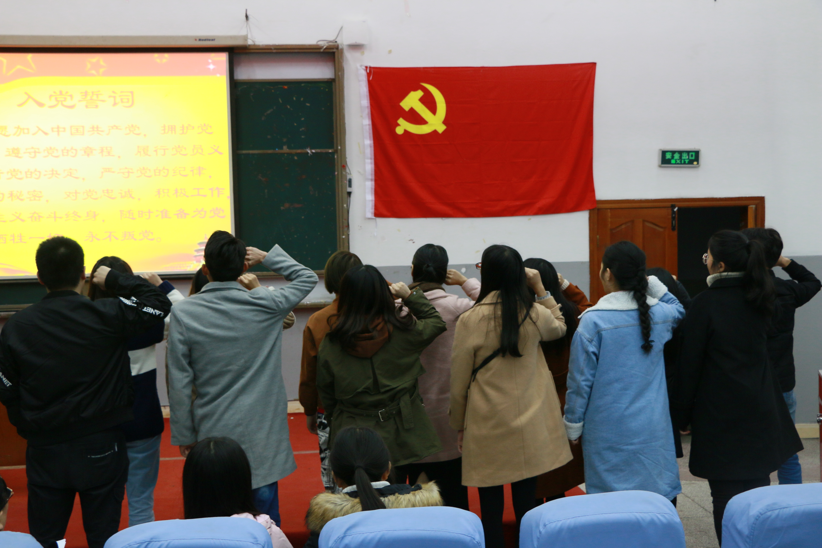 支部青年委员魏晓军同志带领上一期发展的预备党员在党旗下庄严宣誓。