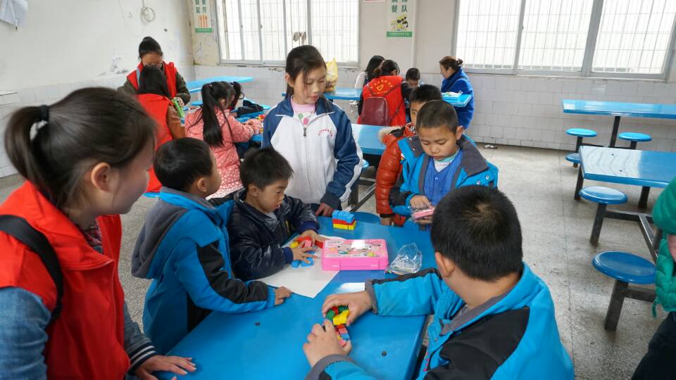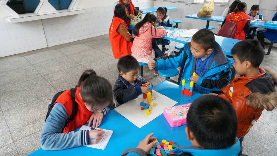 乘车一个小时,步行半小时后,早上九点全体志愿人员达到达州市特殊教育公司。身穿志愿服装,手腕上绑着象征健康与爱心的蓝丝带的志愿者同学们,以专业的姿态和昂扬的热情快速投入关爱活动中。为了更深入的了解自闭症儿童的现实情况,5名有较为明显有自闭症倾向的儿童在志愿者的温情陪护下,来到公司相对安静和宽敞明亮的食堂,与孩子们进行一对一面对面的交流。志愿者将早已准备好的能获取孩子兴趣而增进交流动机的礼物送给孩子们,有水彩笔、画纸、积木、黏土手工品、零食等。很快就打破了孩子们对志愿者们的戒备,志愿者姐姐哥哥们耐心的陪伴孩子们画画、搭积木、做游戏,小心翼翼的尝试着与孩子们沟通交流,尝试走近孩子们的内心世界。时常有孩子不受控制或情绪失控的情况发生,但志愿者们坚定信心,耐心安抚,温柔陪伴。用心用爱交流总会有所触动,其中四个小朋友从最初的冷淡到渐渐的话多了、表情更丰富了,素材采集制作同学默默将这一幕幕温暖的画面定格。