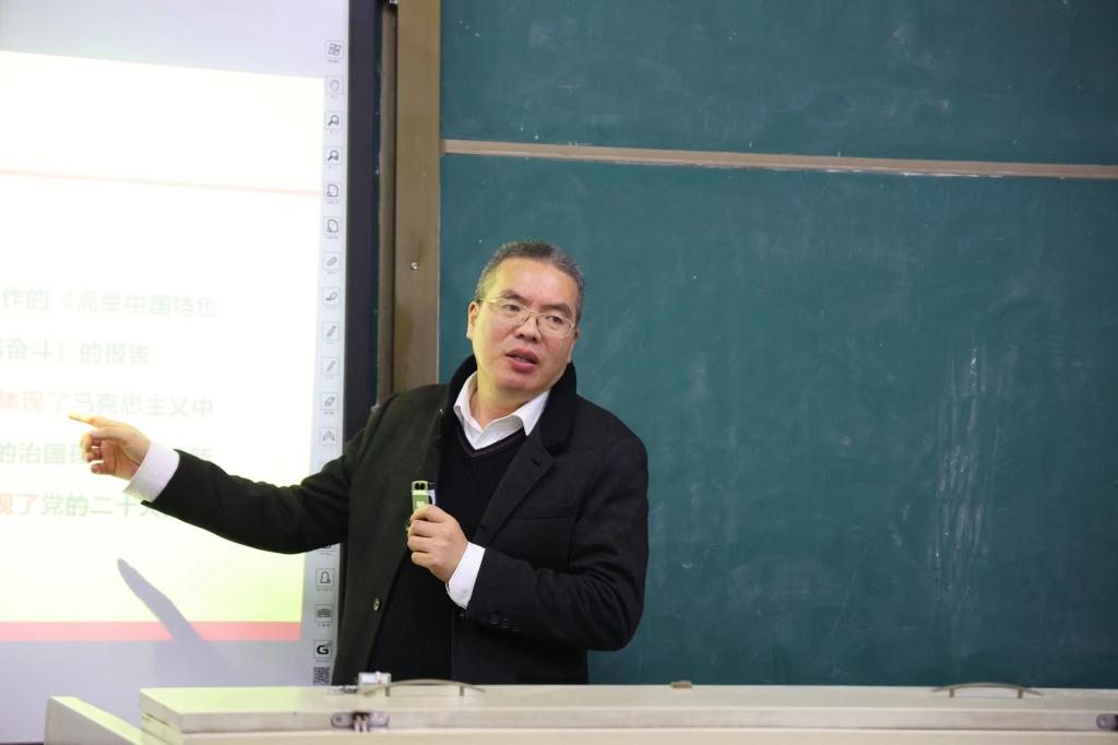 徐晓宗副董事长简要概述了本次课的来源及背景,接着重点从四个方面为我们详细阐释了该内容。一是要深刻把握党的二十大的主题和主要成果。他强调,要高举中国特色社会主义伟大旗帜,全面贯彻习近平总书记思想,弘扬伟大建党精神。鼓励我们要坚持真理,坚持理想,践行初心,担当使命,不怕牺牲,英勇斗争,勇于做时代的接班人。二是深刻把握过去五年的工作和新时代十年的伟大变革。徐董事长谈到,过去五年党和国家事业取得举世瞩目的重大成就,但有收获必然也有挑战。他列举出中国过去五年乃至现在仍然可能存在的挑战,例如新冠疫情、香港局势动荡变化以及国际局势急剧变化等。他还带领我们回顾总结了新时代十年的伟大变革,并讲述了这十年的伟大变革及里程碑的意义。三是深刻把握开辟马克思主义中国化时代化新境界的历史责任。徐董事长提出,我们要把握好新时代中国特色社会主义思想方法论,坚持好、运用好其中的立场观点,要透过现象看本质。四是深刻把握以中国式现代化、全面推进中华民族伟大复兴的使命任务。徐董事长提到有关两个文明的协调发展,希望全体成员响应国家号召,做到人与自然和谐相处,坚定不移地走和平发展道路。他表示,当下的中国正处在一个重要的历史阶段,寄语财经学子不忘初心,牢记使命,以高昂的斗志和饱满的热情去迎接新时代赋予我们的历史使命,争做新时代党的事业接班人。