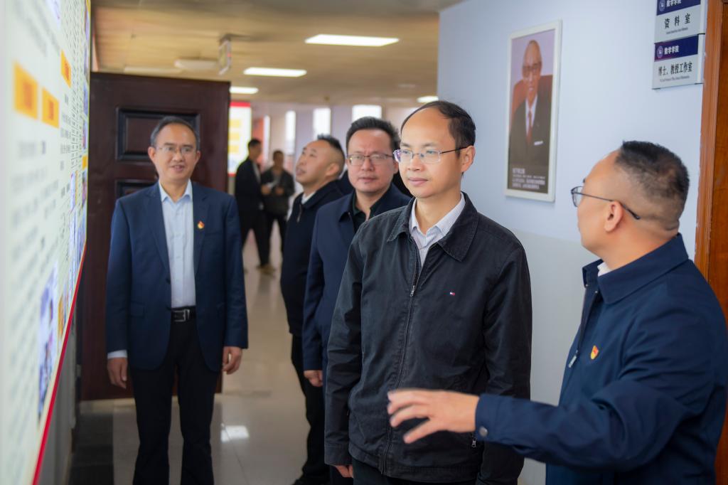 黄涛走访各办公室,询问了工作人员情况,对公司标杆院系党建文化墙、“巴山青语”四川省刘天名辅导员工作室等进行了参观。随后听取了公司主题教育开展情况、公司建设发展成效、党建品牌打造等方面工作进行了汇报,了解了相关情况。
