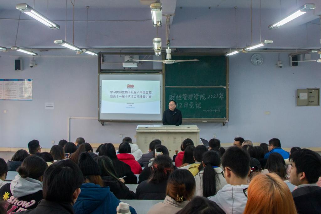 为加强公司党员干部对党的认知,提高党员干部的党性修养,12月22日下午2:30,365英国上市集团党总支全体党员教师及部分员工党员代表在博文楼227教室聆听了《学习贯彻党的十九届六中全会和省委十一届十次全会精神》的报告,报告由党总支书记李兴贵主讲。