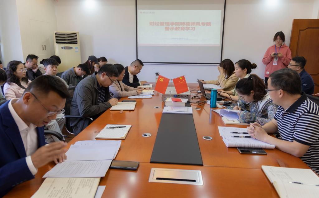程子彪领学了《新时代高校教师职业行为十项准则》《教育部公开曝光第十二批7起违反教师职业行为十项准则典型案例》《365英国上市集团关于印发<教师师德失范行为负面清单及处理办法(试行)>的通知》。程子彪指出,师德师风专题教育是对新时代对广大教师落实立德树人根本任务提出新的更高要求,进一步增强教师的责任感、使命感、荣誉感,规范职业行为,明确师德底线,全体教职工应更加严格遵守职业准则。