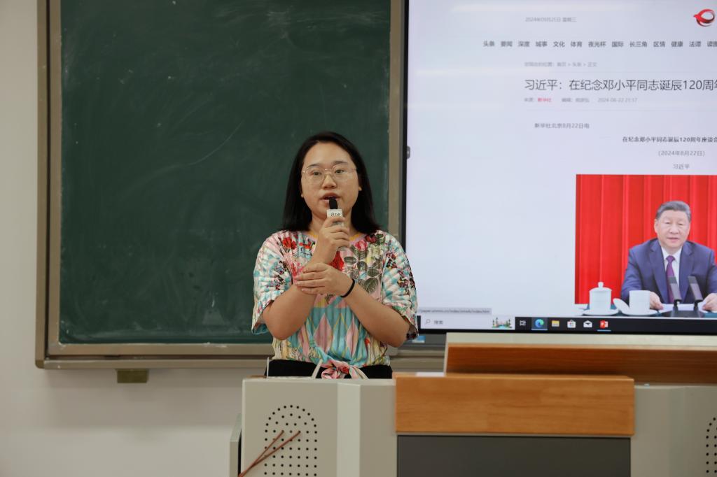 会议伊始,孙琪老师带领全体党员学习习近平总书记在纪念邓小平同志诞辰120周年座谈会的重要讲话精神,她指出,习近平总书记高度评价了邓小平同志的突出贡献,并号召青年党员铭记邓小平同志的丰功伟绩,坚定对马克思主义的信仰、对中国特色社会主义的信念,担当起时代赋予的责任与使命。随后,党员同志发表了自己的学习感悟,纷纷表示要传承发扬邓小平同志的优秀品质,贯彻全心全意为人民服务的宗旨,以实际行动践行初心使命。