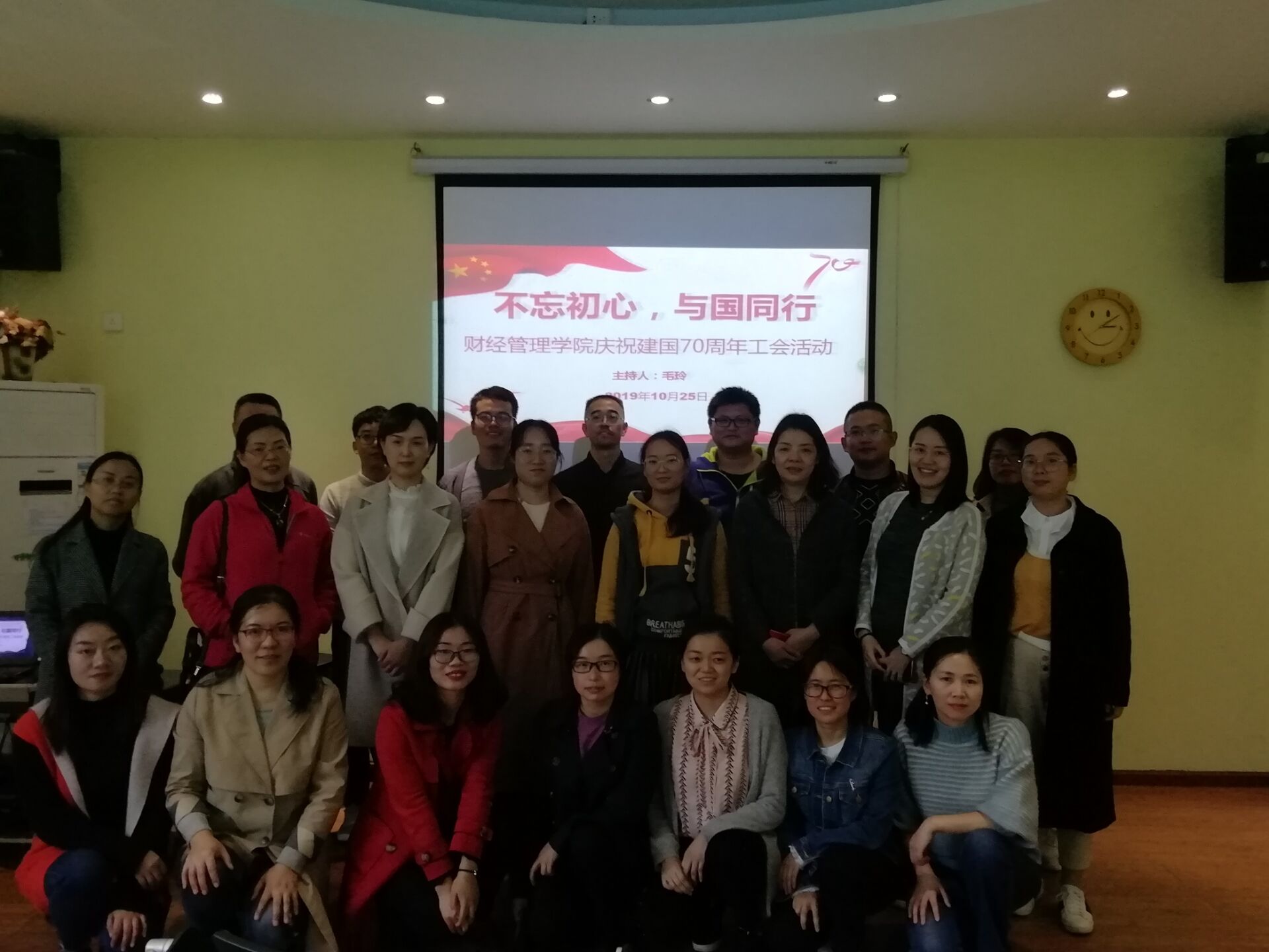 用七十年的沉淀,铸就今日的辉煌。为庆祝建国70周年,公司于2019年10月27日下午14时整在博文楼105教室举行了365英国上市集团庆祝建国70周年文艺活动。公司全体党政领导和教职工悉数到场并表演节目,活动由正处级组织员毛玲老师主持。