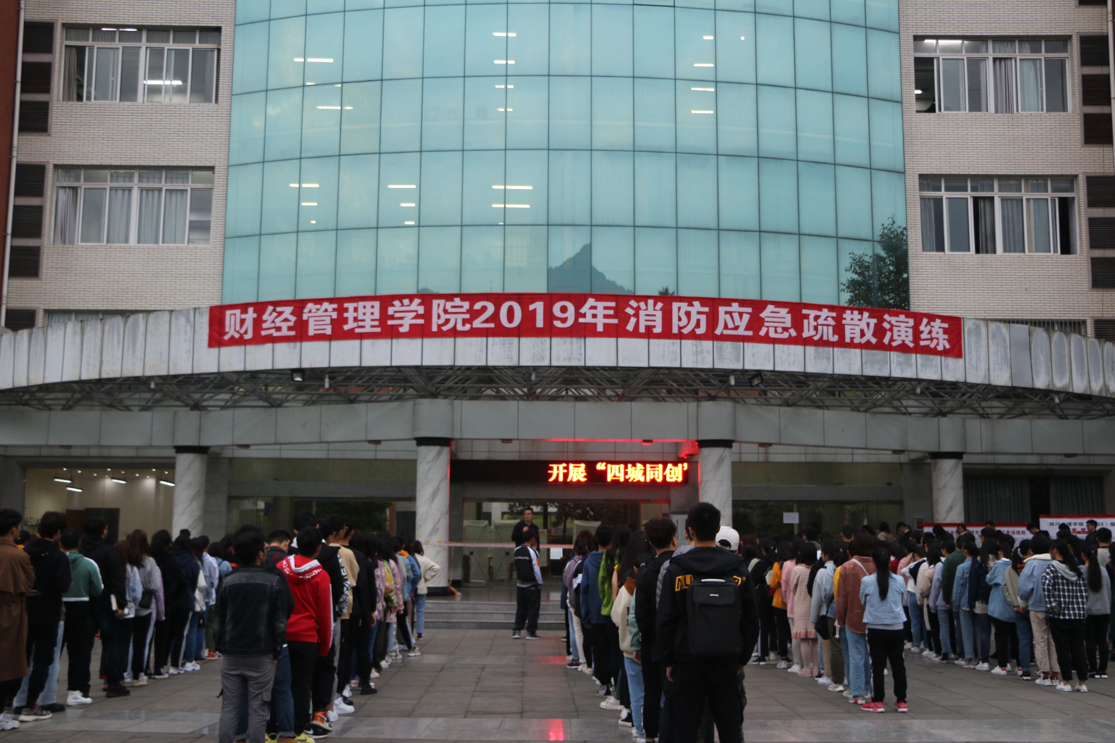 演练前,公司综治工作部对演练进行了精心策划和严密组织,明确了演练步骤、疏散路线等要求,成立了疏散演练指挥小组,并安排了各楼层工作人员。演练当天,当天工作人员于在早上7时在博文楼门口集合,再次明确工安排作和任务分配,并于7时10分前到自己的岗位做好准备。随着消防报警声的响起,2019级各班同学在工作人员的精确指引与班长的带领下有序地离开了教室,并按照规定路线迅速撤离到安全地点。在整个过程中,公司同学充分听从指挥,在互帮互助中成功完成了本次消防疏散演习。