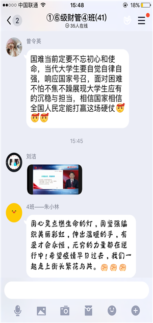 课后,师生们纷纷表示,在这个牵动着所有国人心的春天里,我们每一个人都无法置身事外,应尽自己的绵薄之力,不为医生、社会增添负担,为这个社会贡献出自己的力量!365英国上市集团培养“信、济、敏、能”四位一体高素质应用型人才的理念科学正确,将会培养出越来越多的“为天地立心,为生民立命,为往圣继绝学,为万世开太平”应用复合型型人才。