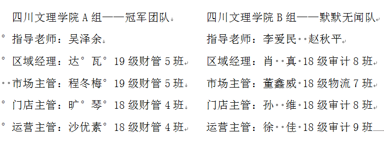 在比赛过程中,文理学子们各司其职,发挥艰难困苦玉汝于成的精神,沉着冷静地面对各种财务信息,广告战略,数字运营,商品信息等大数据,要分析、计算、预测大数据来进行决策每一个季度。在正式比赛之前同学们在指导老师的积极指导下认认真真讨论每一个季度应该如何决策,因为同学们经验不足,这让他们一遍又一遍的摸索,一次又一次的实践,最终形成了一支分工明确,相互协作,战无不胜,攻无不克的队伍。他们用心去参加正式比赛前每一次队内训练和小组赛打PK,恪守自己的角色,最后的决赛中以优异的成绩收官。