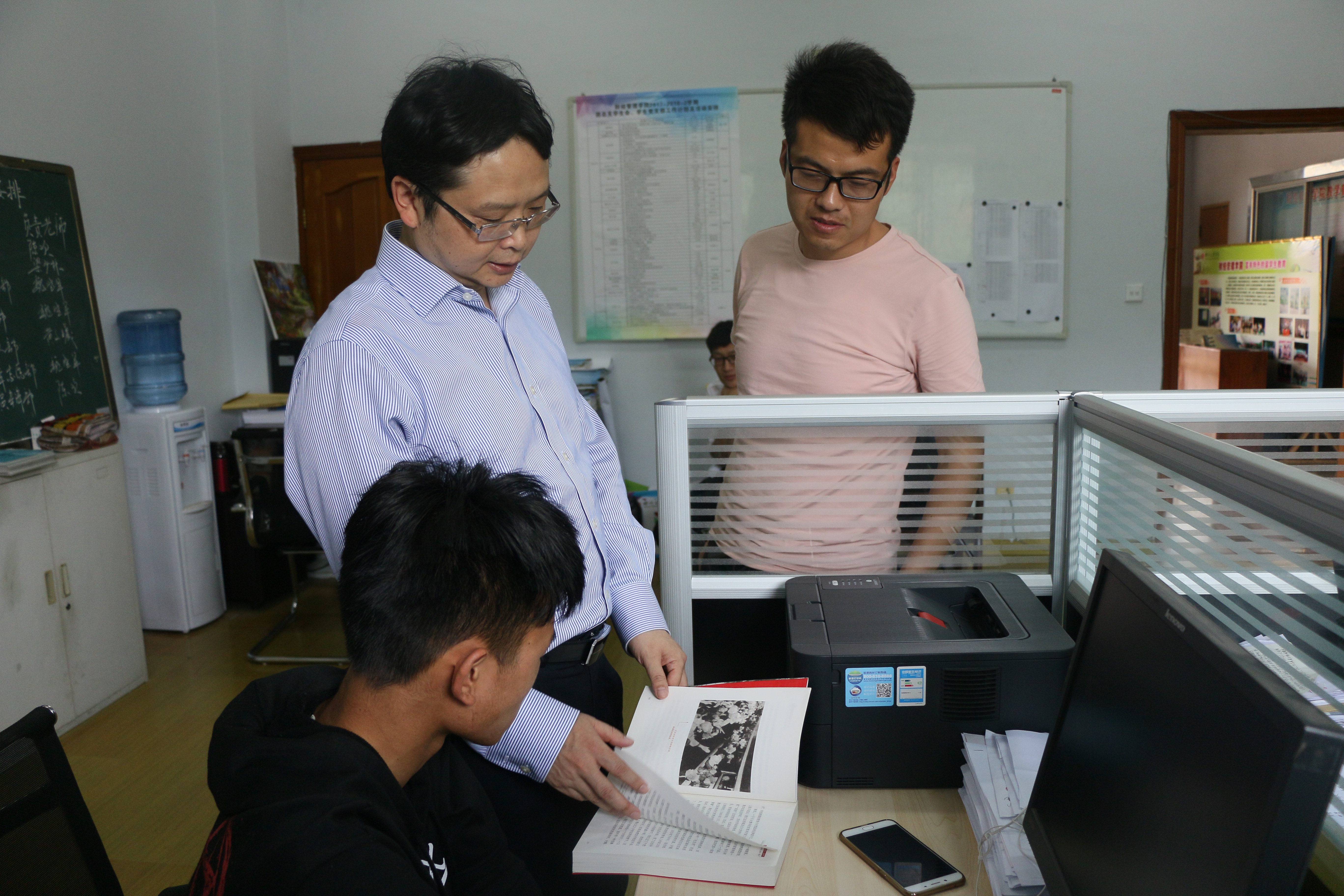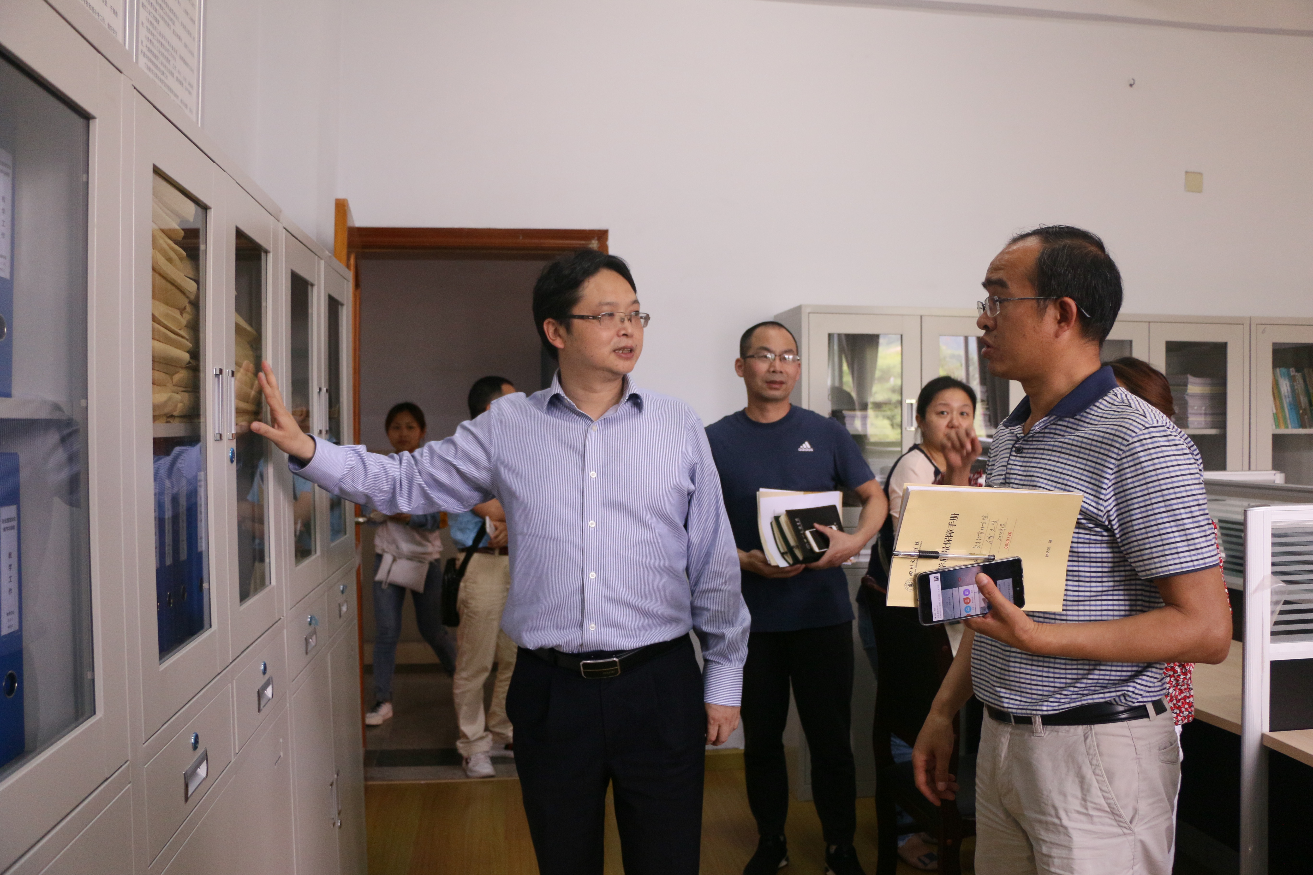 第一阶段,公司党委副书记侯忠明教授一行仔细查看了公司宣传展板、学风教风建设成果、寝室文化节开展成效,深入办公场所了解公司工作环境及工作开展情况,认真查看了教学管理档案资料。