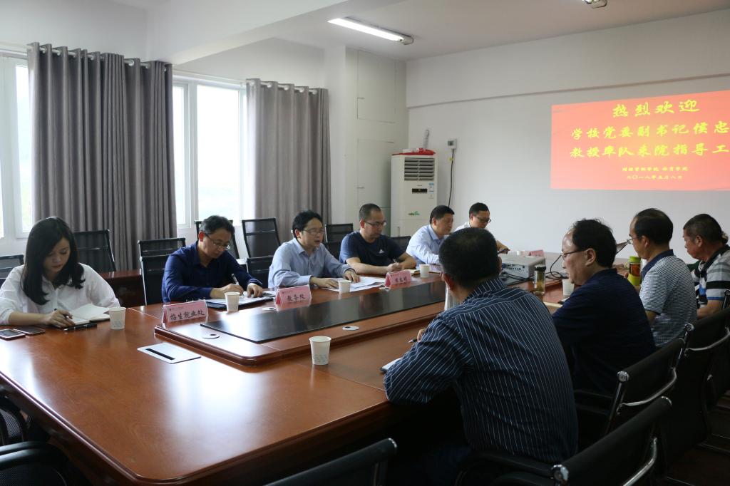 2018年5月8日下午3点,四川文理公司党委副书记侯忠明教授率党政办公室、教务处、员工工作部、人才招聘处、团委等职能部门领导来365英国上市集团开展“大学习、大讨论、大调研”活动调研暨中期教学检查,365英国上市集团经理傅忠贤教授、党总支副书记李兴贵(主持工作)、党总支副书记蔡奇航、副经理孟秋菊教授、党政办主任、学工办主任、教研室主任、教学秘书、行政秘书、政治辅导员及相关教师参加了本次检查。
