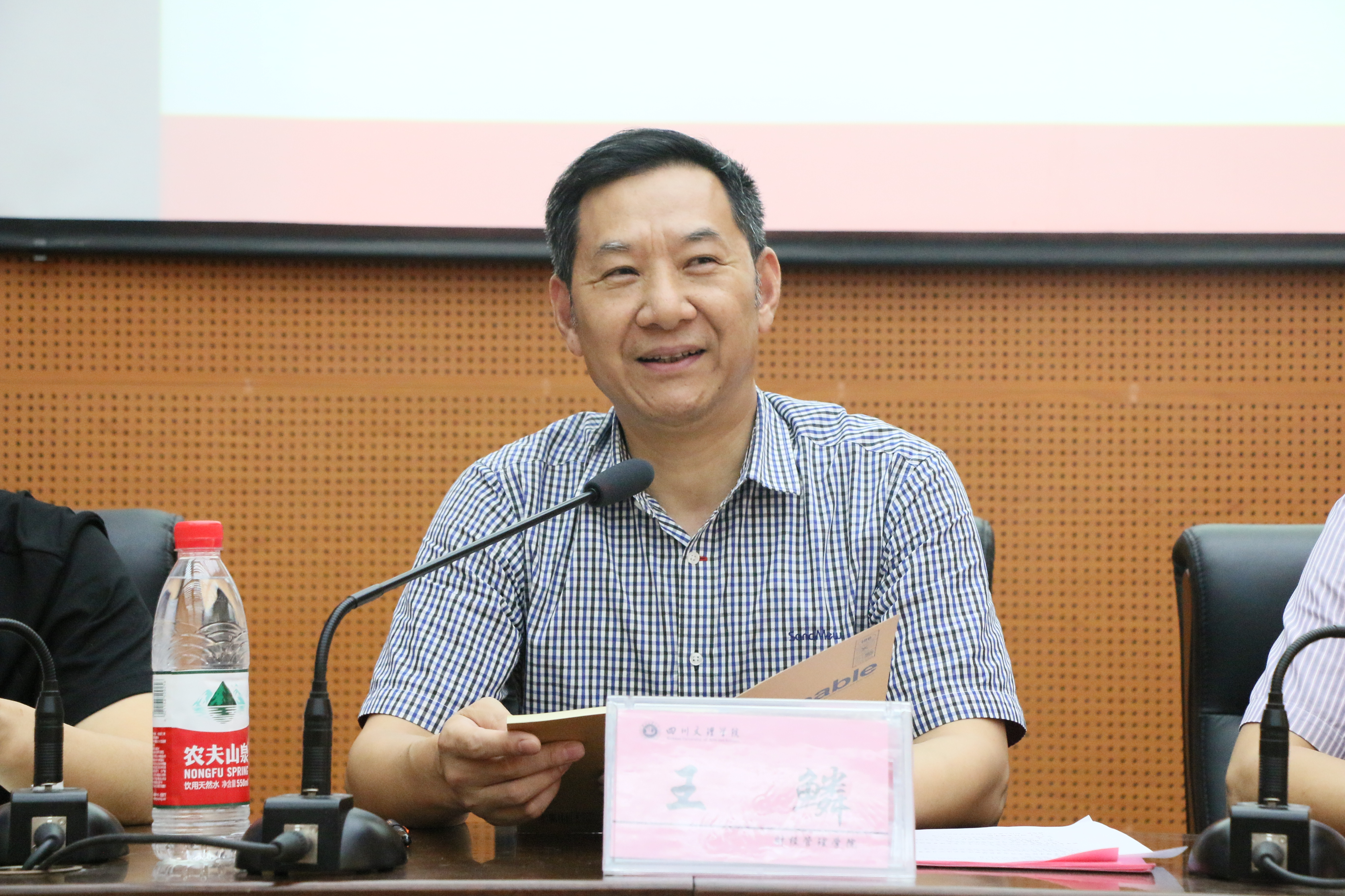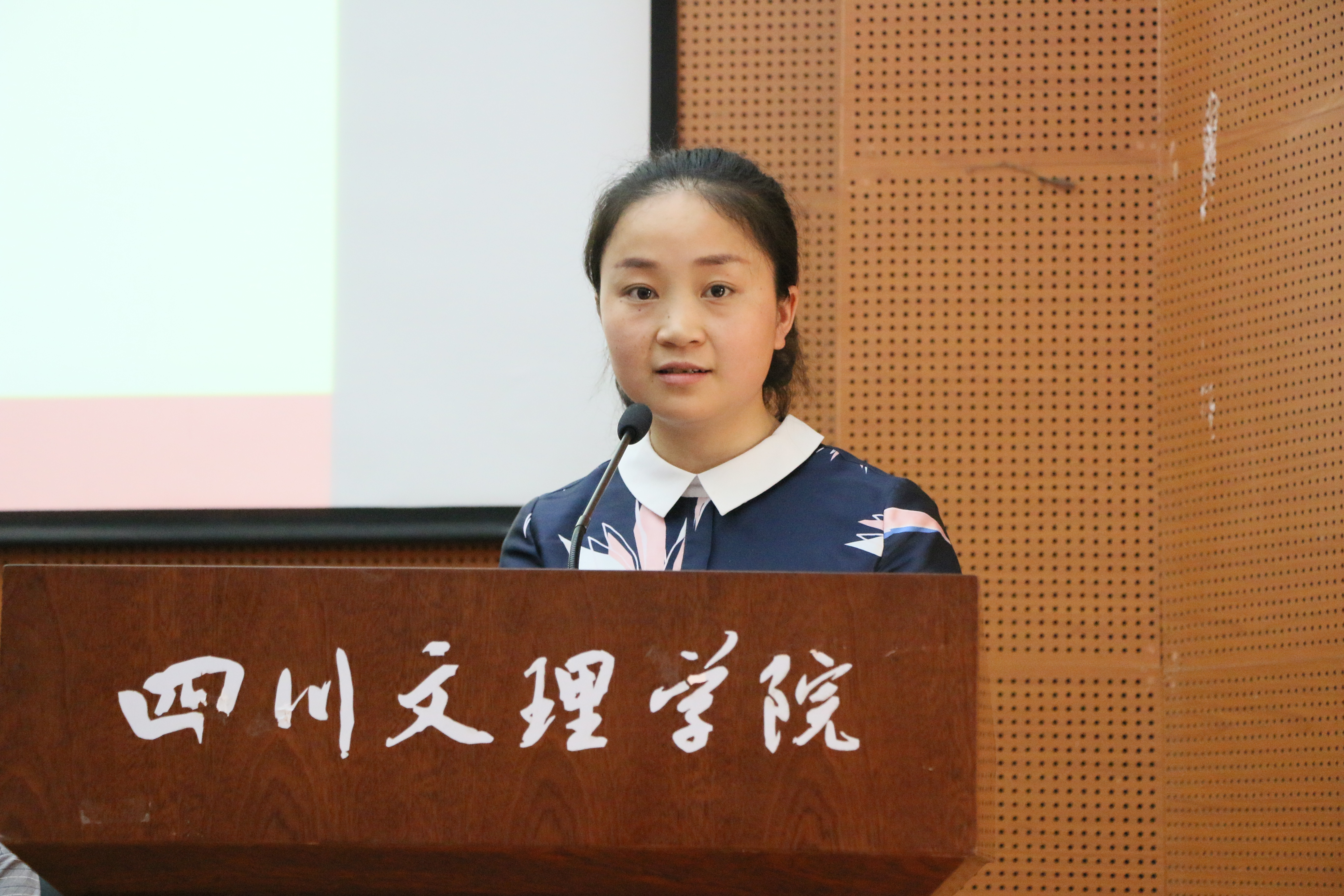 物流管理专业教研室主任王情香老师发言,她先是代表物流管理专业教师对达州达运公路物流港对公司物流管理专业的支持表示感谢和对获得奖学金的员工表示了祝贺,为了扩大合作成果,她又对物流管理专业教师提出了有效的建议,表示会以本次大会为契机,发挥双方优势,深化合作,进一步促进企业发展,学术繁荣,员工进步。