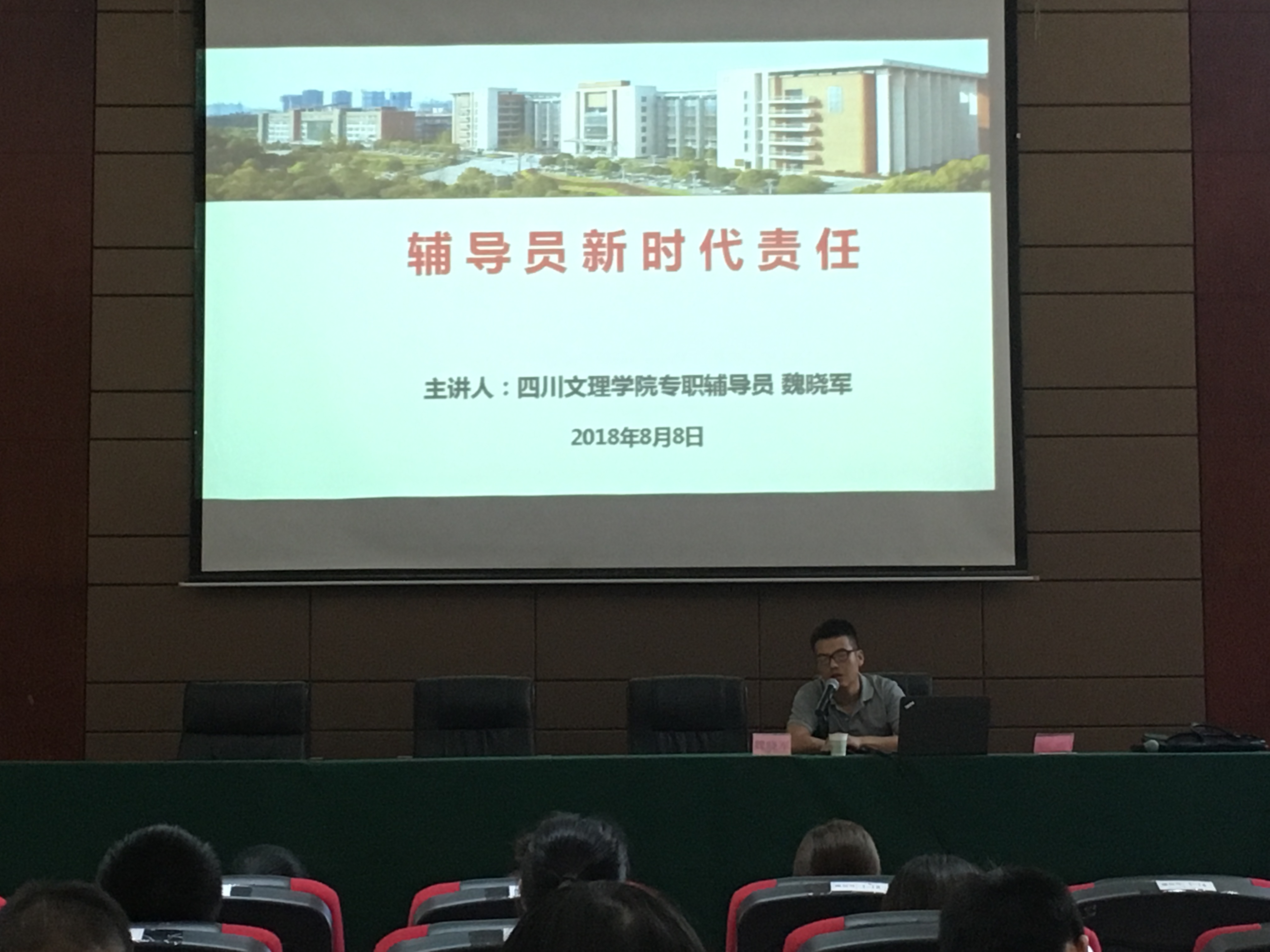 8月6日至8日,巴中职业技术公司2018年新学期辅导员培训会在集团学术报告厅举行。公司专职辅导员魏晓军老师受邀为培训会做主题讲座。