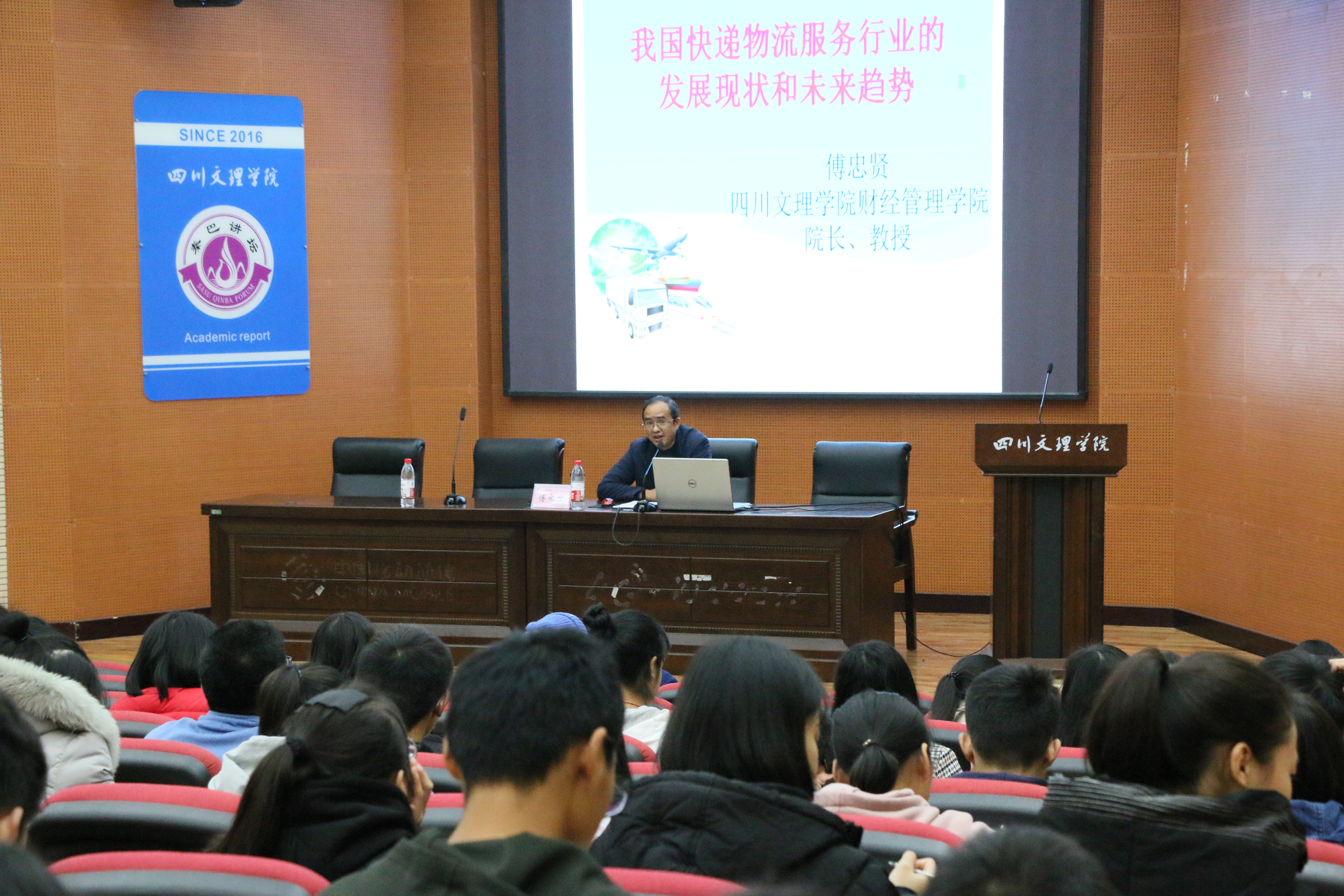 11月12日19时,经理傅忠贤教授在学术报告B厅为公司学子作“我国快递物流服务行业的发展现状和未来趋势”的学术讲座。