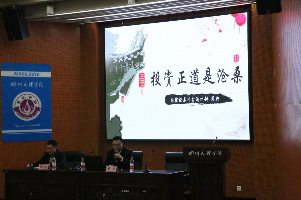 讲座伊始,周煦先生就提出了他的投资理念:“长期投资+资产配置”。接着,周煦先生以一个个接近生活的问题、事例向我们详细讲述了投资中“什么不可为”。他讲到,投资过程中一定要有自己的世界观、价值观,不要随意相信民间的“炒股秘籍”,否则你将可能成为“二八定律”中“八”的部分。炒股过程中不要把运气当做自己的实力,“一年五倍者如过江之鲫,五年一倍却寥若辰星!”股市中聪明人太多,有智慧的人太少。在投资过程中,不要投机取巧。真相才是开启智慧的大门。在投资过程中,不要轻易相信媒体的言论,要寻找正规的投资公司,进行科学的投资分析。投资的核心逻辑就是尊重市场大道,克服人性的缺陷,反复做确定性的事情,复制终将产生奇迹。投资理财的讲座中,周煦先生也就同学们关心的求职就业、职业规划、投资理财等问题提出了诸多自己的独到见解看法。特别是欢迎公司相关专业的同学去国信证券达州分部参观学习。