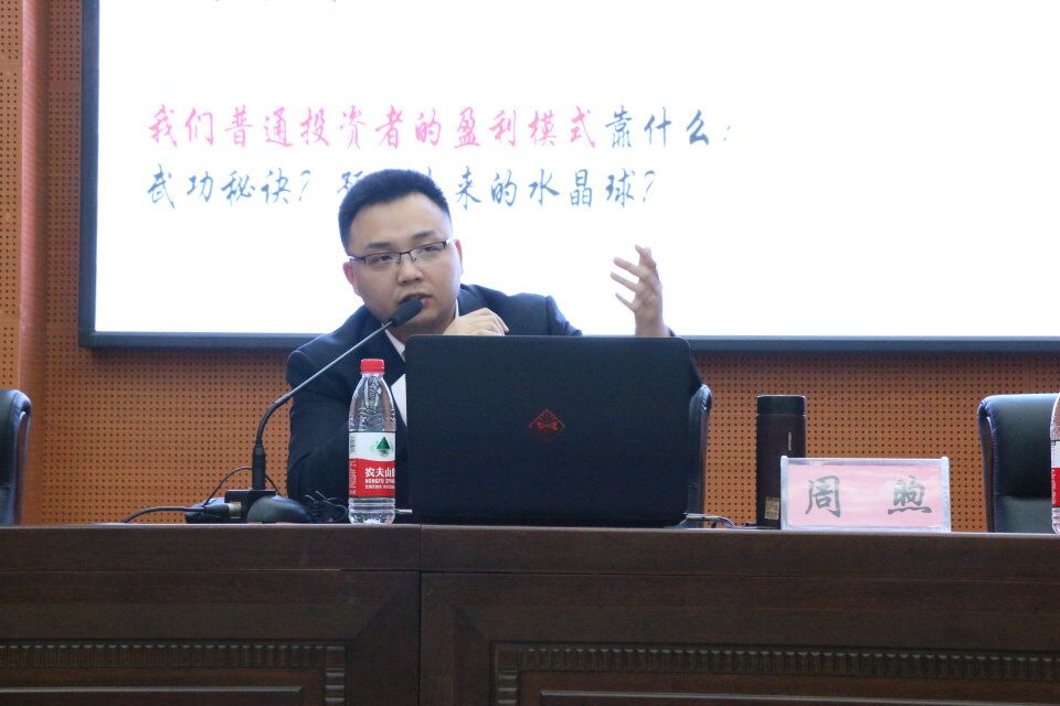 最后,公司财会教研室熊光明老师对本厂讲座简要做了总结,他说周煦先生今晚的讲座专业性强,极具实际应用性,对培养财经学子的理财意识有很大的启发和指导意义,再次感谢周经理的百忙中为公司学子倾情分享理财知识。同时也希望同学们在专业学习过程中,多多涉猎与专业相关的知识技能,不断提高自我专业素养。
