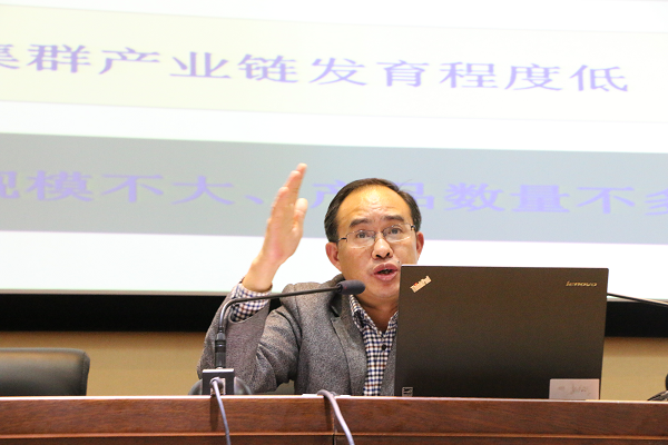 傅忠贤教授首先扼要介绍了项目设立背景、来源、成果性质与项目成果,本次讲授的内容是傅教授主持完成的公司第一个达州市科技开发软科学项目《欠发达地区特色农产品加工产业集群培育与提升:产业链视域下对达州的审视》最终研究成果的总结与展示。接着傅教授分析了达州培育特色农产品加工产业集群的重要性与紧迫性,分析了建构特色农产品加工产业集群评价指标体系的理论逻辑,介绍了由1个一级指标3个二级指标9个三级指标27个四级指标构成的评价指标体系,剖析了达州特色农产品加工产业集群发展的成效与问题,重点阐述了提升特色农产品加工产业集群的战略选择。傅忠贤教授提出,应构建达州特色农产品竞争力评价体系,以优化达州特色农产品加工产业集群的发展路径为重点,核心是解决好“产业链优化问题”;达州必须在产业链优化上迈出坚实的步伐、完善达州特色农产品加工产业集群的组织模式;着力解决达州农产品加工产业集群规划布局存在的突出问题;调适达州特色农产品加工产业集群的决策思维。傅教授还为提升达州农产品加工产业集群规划布局提出了几点科学性的建议。