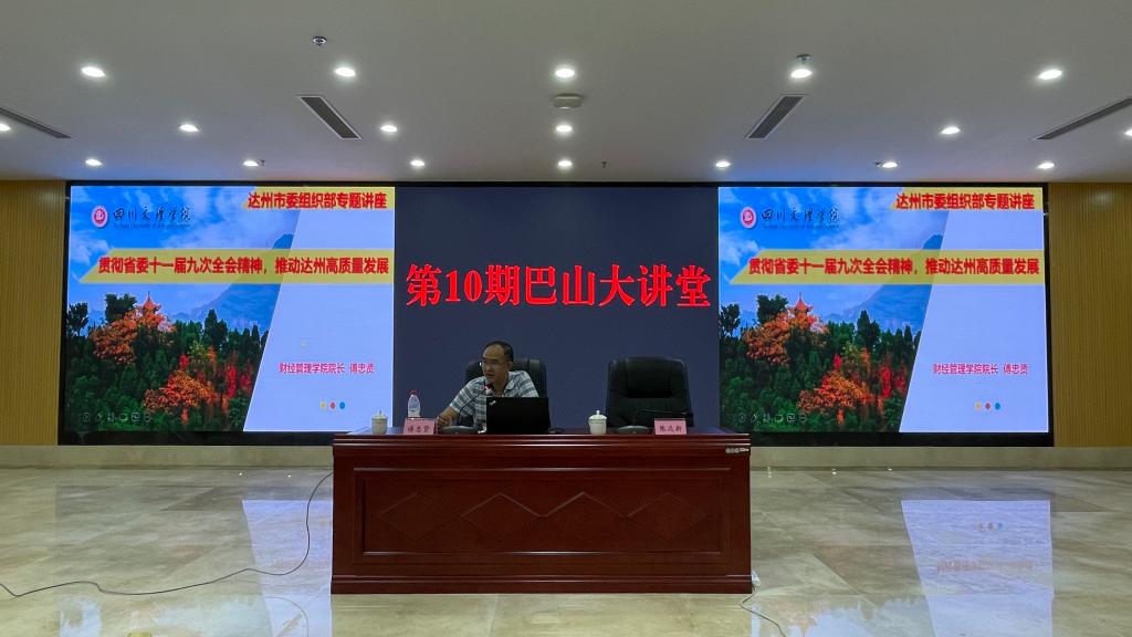 为贯彻落实省委十一届九次全会精神,深入实施创新驱动发展战略,推动达州实现高质量发展,2021年7月22日上午党委委员、经理傅忠贤教授受市委组织部邀请为“巴山大讲堂”第10期做“贯彻省委十一届九次全会精神,推动达州高质量发展”的专题讲座,讲座在达州市委党校学术报告厅举办,达州市委党校常务副董事长张远新主持,300余人与会聆听。