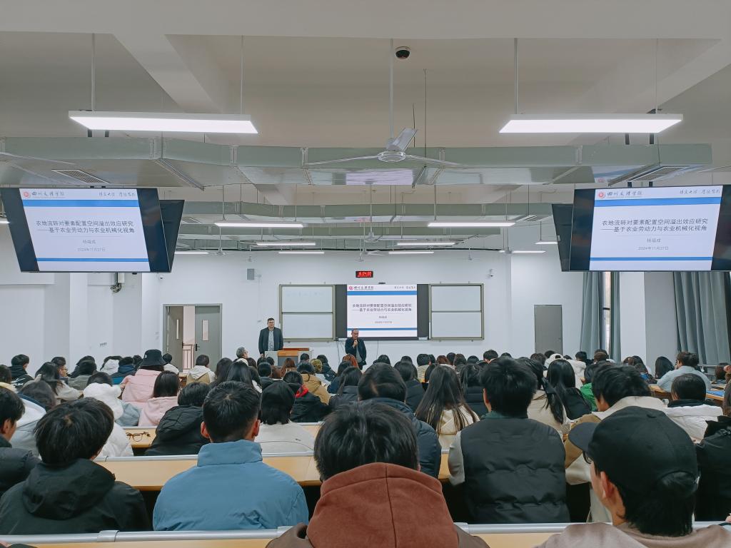 11月27日下午,杨福成博士在莲湖东区A318作题为“农地流转对要素配置空间溢出效应研究---基于农业劳动力与农业机械化视角”的学术讲座。讲座由公司经理傅忠贤教授主持。