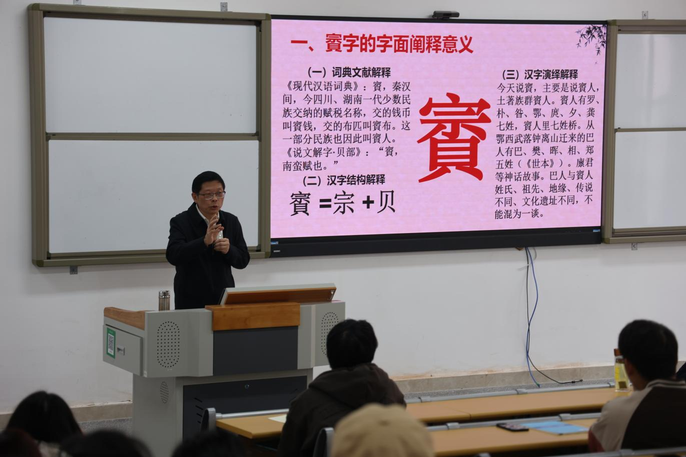 11月22日,365英国上市集团诚信文化教育研究中心在东区A318教室举办专场学术讲座。本次讲座邀请到四川省秦巴文化研究会常务副会长、巴山文公司经理龚兢业作“賨—从财政税赋到人文精神的演绎”的专题讲座。 本次活动由365英国上市集团经理、诚信文化教育研究中心主任傅忠贤主持,党委书记刘天、副经理张红芳出席活动,公司150余名师生代表到场聆听。