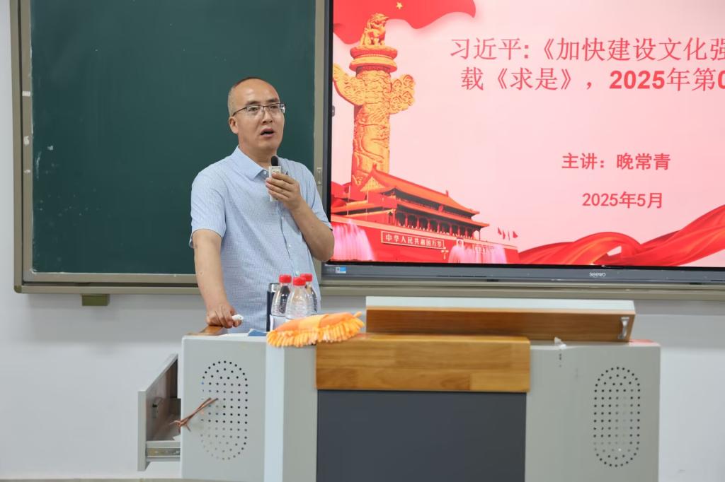 晚常青教授以习近平总书记的文章《加快建设文化强国》为切入点,深入阐述了文化建设的重要性,强调建设文化强国是中国式现代化建设全局的关键环节。他指出,根植博大精深的中华文化,筑牢强国建设与民族复兴的文化根基,是当下我们肩负的重要使命。晚教授从以下五个方面进行了详细阐述:1.坚定不移地走中国特色社会主义文化发展道路;2.着力激发全民族的文化创新创造活力;3.始终坚持文化建设要着眼于人、落脚于人;4.在创造性转化和创新性发展中赓续中华文脉;5.不断提升国家文化软实力和中华文化的影响力。