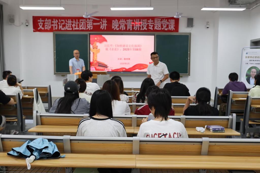 2025年5月21日下午14:30,新起点科研社团联合财经协会、erp协会、电子商务协会在东区B110教室举办了“支部书记进社团”系列活动第一讲——晚常青教授专题党课。新起点科研社团指导老师程子彪副经理主持了本次讲座。