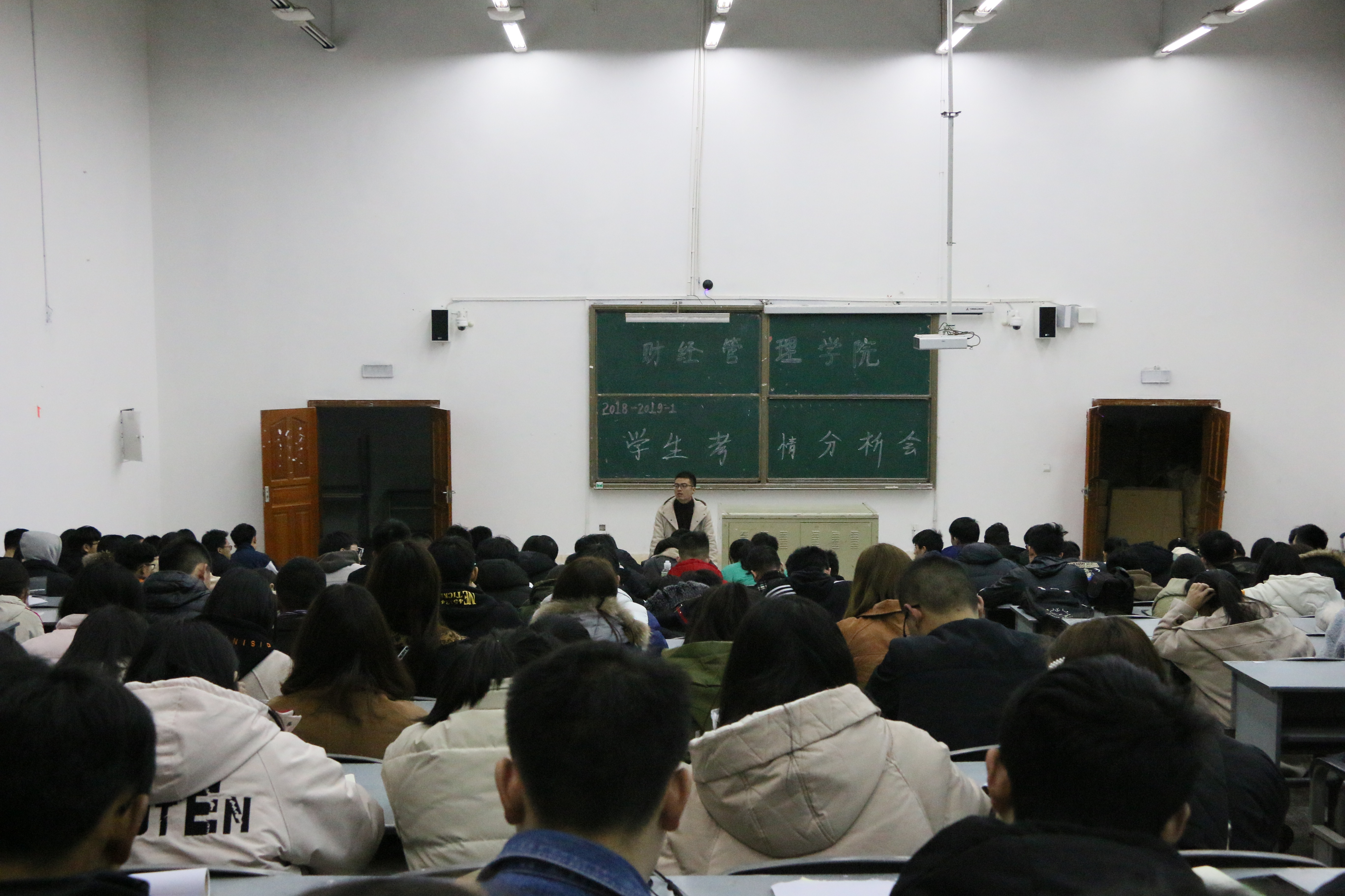 接下来,魏老师简单介绍了2018-2019.1学期2017级、2018级末考情况,从挂科的人次到科目,情况都不容乐观,必须引起大家的足够重视;同时魏老师也分析了造成挂科人次过多、课程相对集中可能是不少同学高考为文科生或者为边远少数民族,在高数等课程方面基础薄弱等现实原因,但更多的是同学们大学以来不良学习习惯态度造成,需进行认真反思。