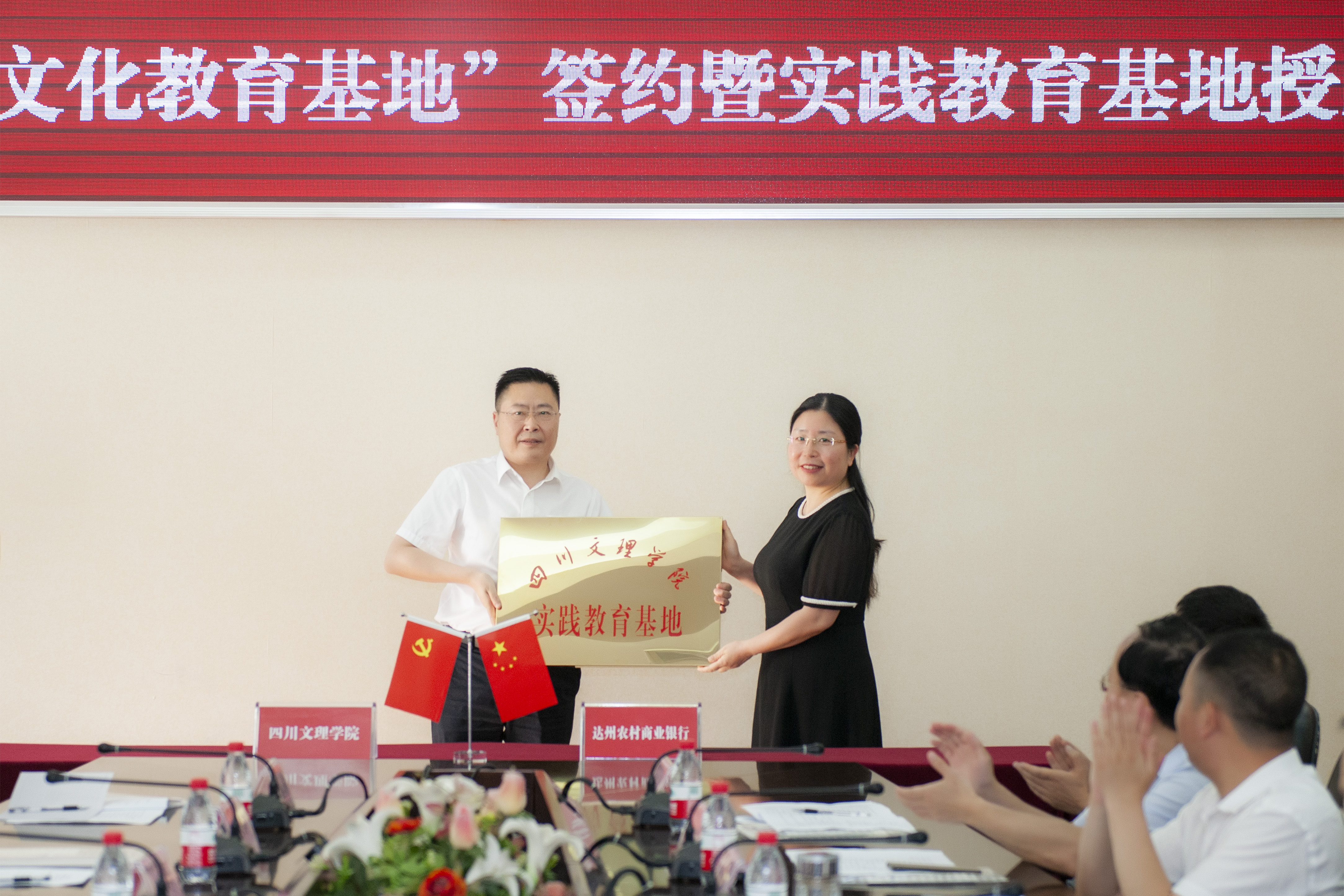 61617时,公司与中国人民银行达州市中心支行、中国工商银行达州分行、达州农村商业银行于弘德楼三楼会议室举行合作共建“诚信文化教育基地”签约仪式暨实践教育基地授牌仪式。这是银校双方第二次携手合作(2021--2025)此次签约暨授牌仪式由公司党委常委、宣传部长余文盛主持。