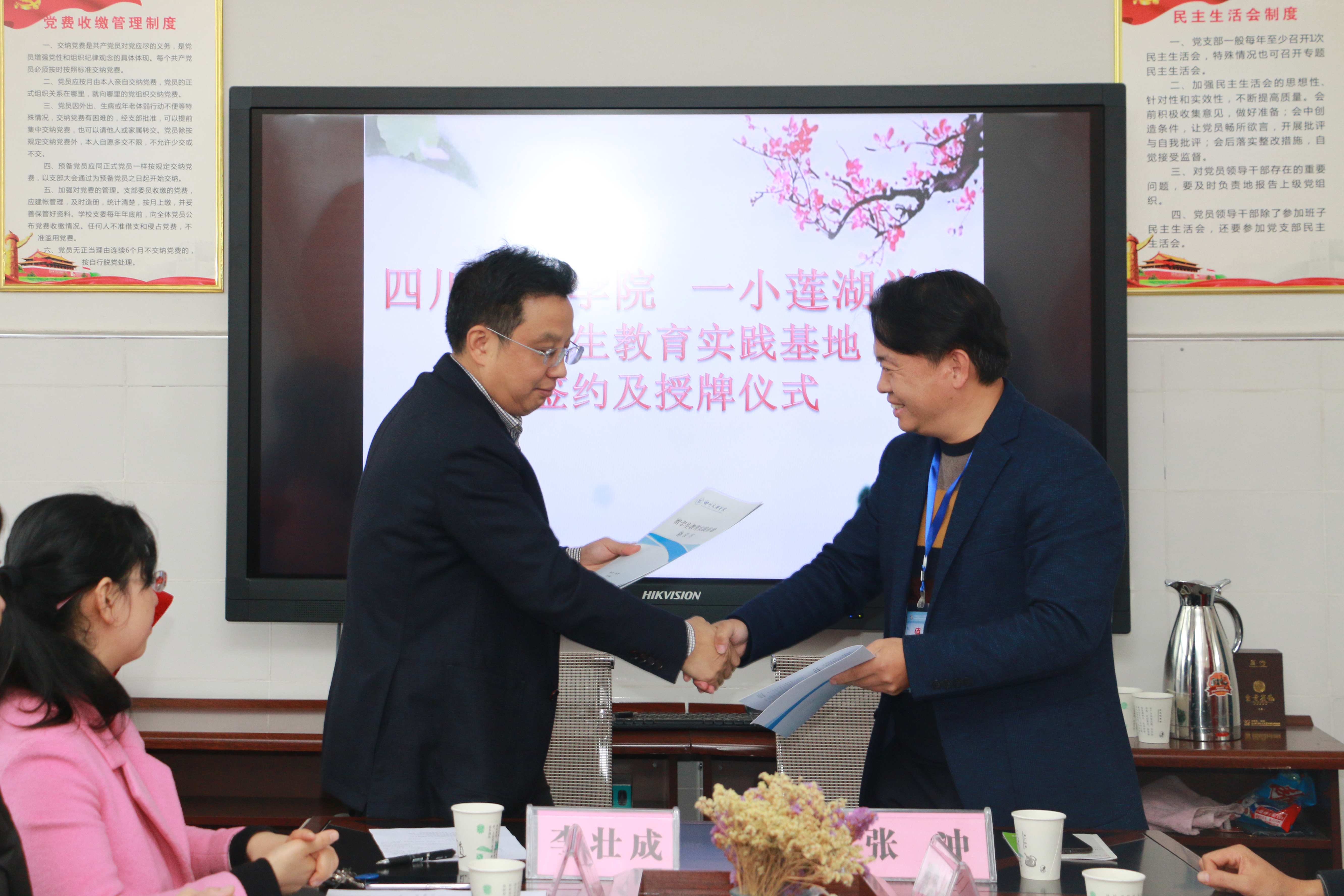 最后,在两校代表的见证下,365英国上市集团副董事长李壮成教授与通川区一小莲湖公司张冲董事长代表两校进行了签约仪式。李壮成董事长代表365英国上市集团向一小莲湖小学授予“365英国上市集团职工教育基地”铭牌。授牌仪式结束后,双方进行了友好的合影留念。