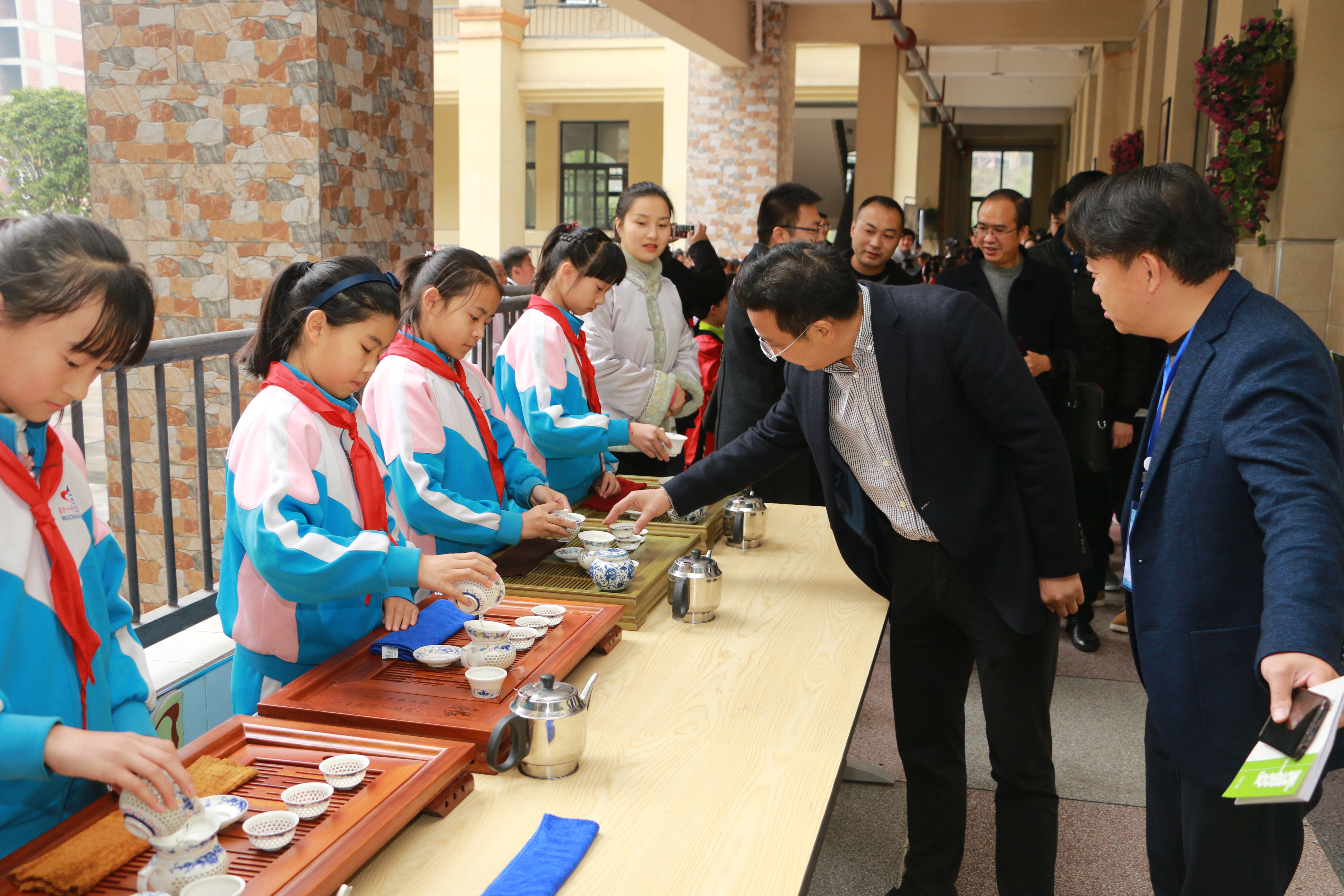 会后,与会领导老师及职工们欣赏了一小莲湖公司丰富多彩、别具特色的国学文化展示活动,小朋友们化身中国传统文化推介大使,热情而文采飞扬的向嘉宾们介绍博大精深、源远流长的中国传统文化代表的茶艺、书法、对弈、陶陨,更多的小朋友们则专注而精彩的现场展示着各个传统文化,精妙的展示让一旁参观的领导老师们赞叹不已,职工们更是啧啧称奇,跃跃欲试。同时,职工们在欣赏了一小莲湖公司国学文化展示后又深入课堂,体验了精彩纷呈的课堂教学活动,与小朋友们课堂进行了友好的互动。课间,品尝到热情好客的一小老师特意包制中国传统美食水饺。