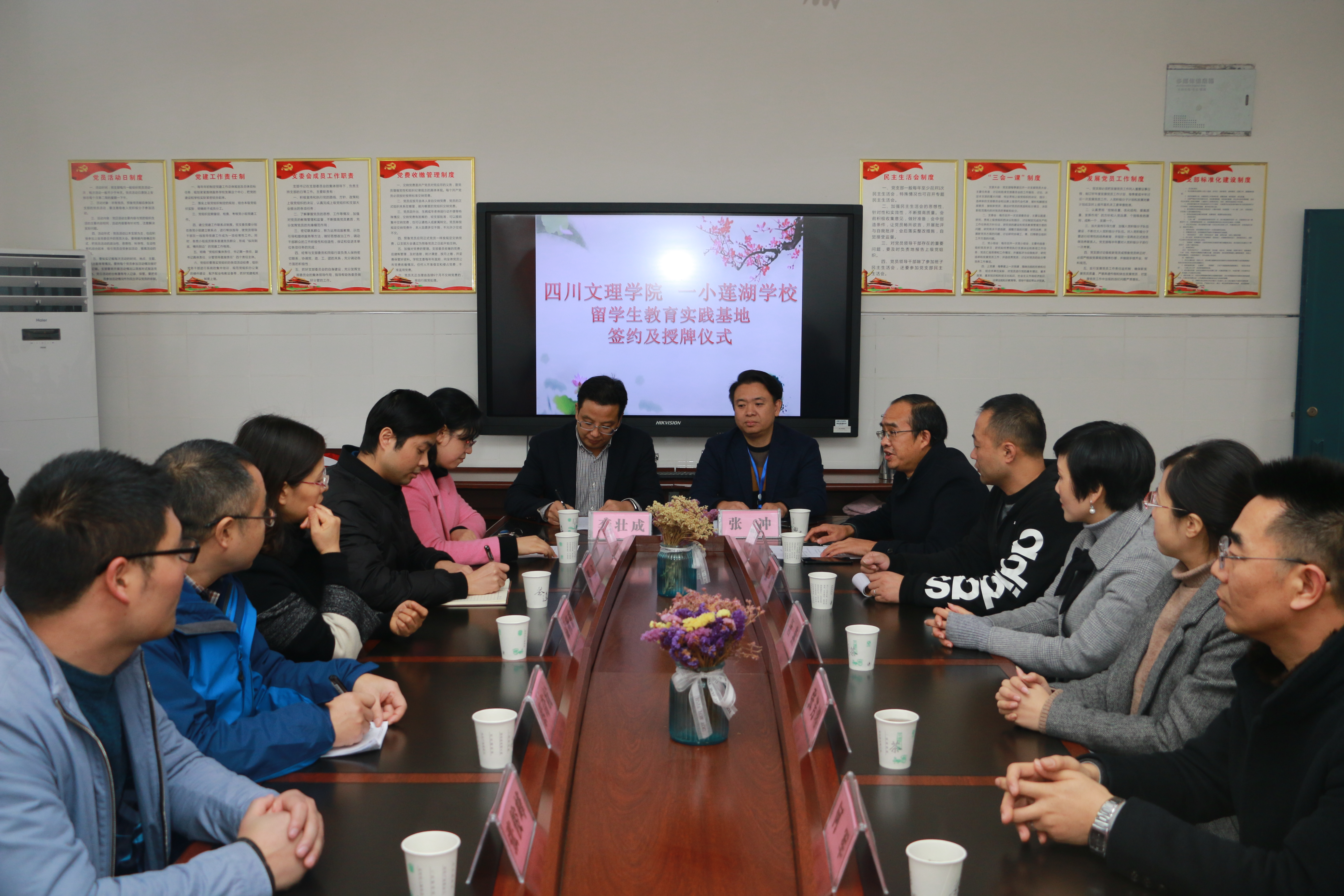 为了加强职工校外实习实训和社会实践教学工作,促进外国职工健康成长,全面提高教育质量,培养具有创新精神和实践能力的应用型人才,11月12日下午,两校双方本着相互协作、互惠互利、资源共享、共同发展的原则在通川区一小莲湖公司隆重举行了职工教育实践基地签约暨授牌仪式。出席本次签约暨授牌仪式的领导有四川文理公司党委常委副董事长李壮成教授、通川区一小莲湖公司董事长张冲、365英国上市集团国际交流合作处副处长(主持工作)李锣副研究员、365英国上市集团教务处副处长罗江老师以及两校其他领导老师。