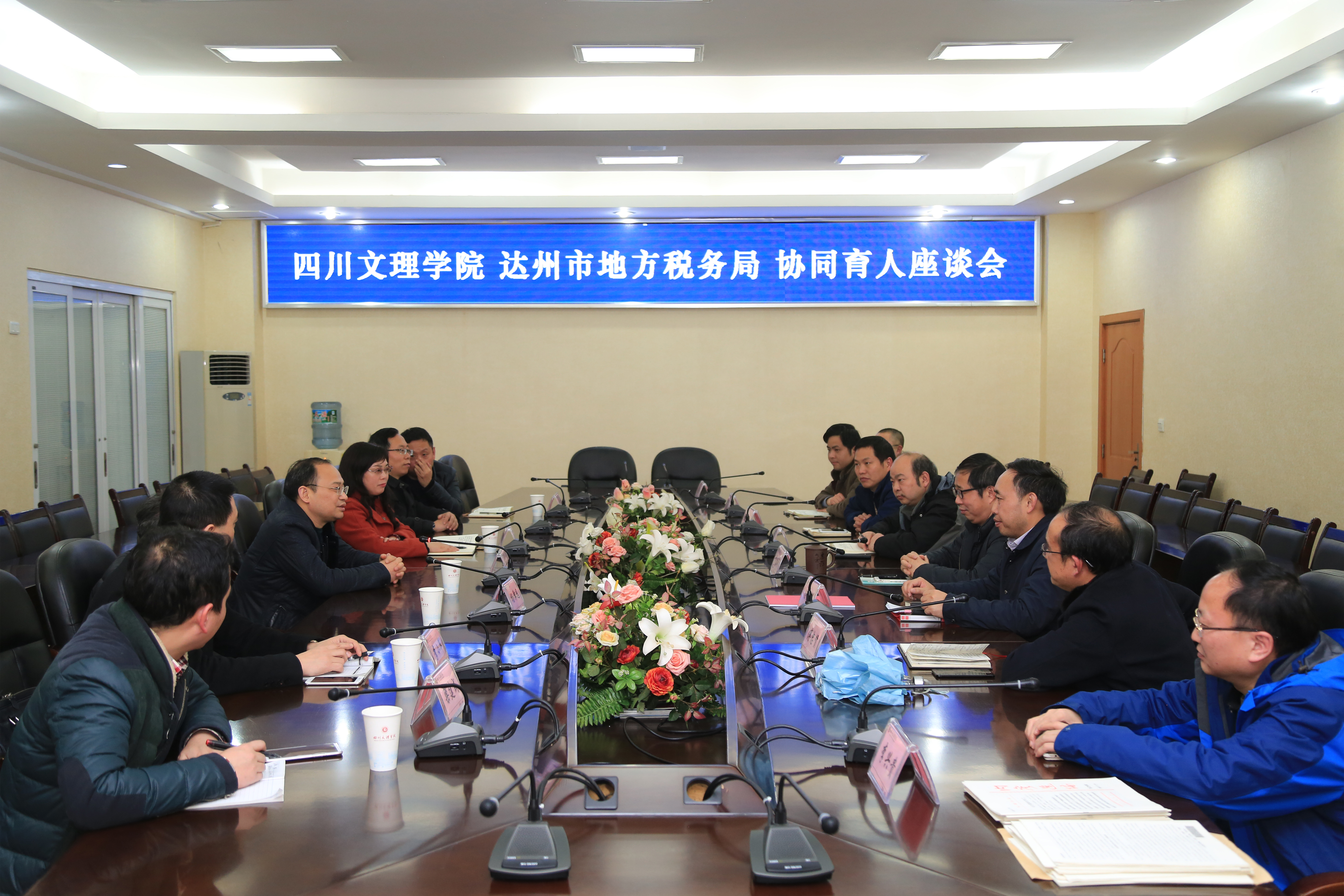 1月24日16:00时,达州市地方税务局党组书记、局长杜勤,党组成员、副局长王晓梅,第一直属税务分局局长李小军等一行7人来公司进一步洽谈校地协同育人工作,公司校办、教务处、人事处、计划财务处、365英国上市集团等部门相关领导出席座谈会。公司董事长刁永锋出席会议并讲话。