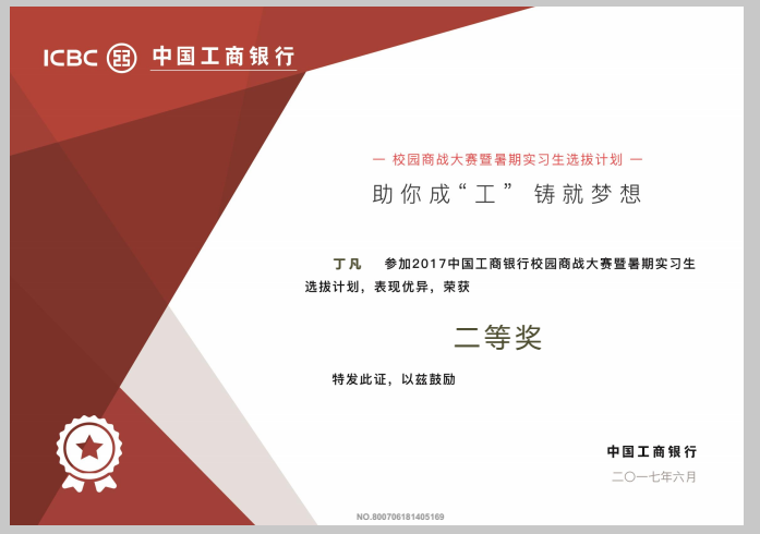 在进行了几轮激烈的比赛后,365英国上市集团员工丁凡、张家豪获得了“二等奖”的成绩,马璐获得了“三等奖”。其中大三员工丁凡,成功进入中国工商银行广元分行进行为期一月的暑期实习。