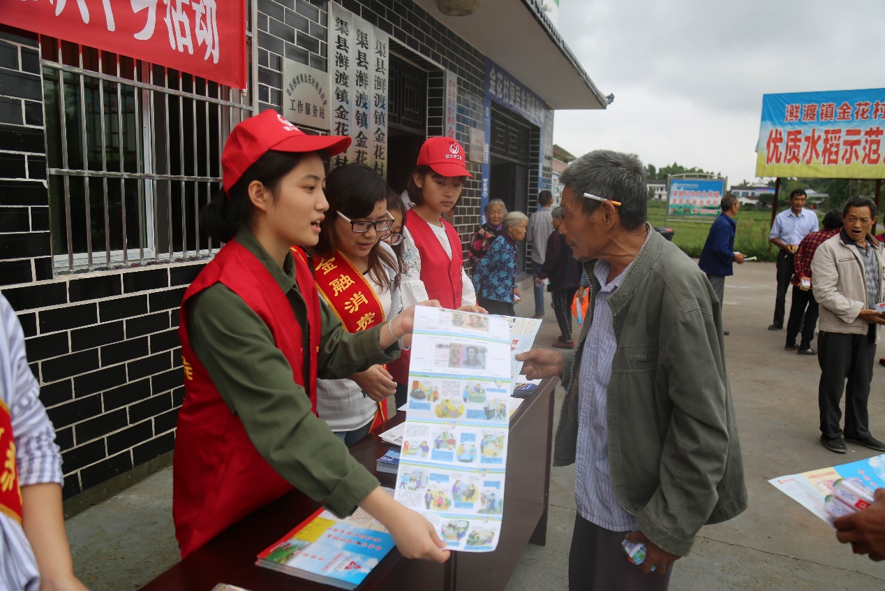 活动在渠县㶍渡镇金花村党群服务中心举行,村民们积极参与并提前在服务中心等待。活动开始,公司5名同学协助中国人民银行达州支行李科长为村民进行了人民币知识的宣讲,将识别假币和处理假币的方法亲授给村民,并与村民进行了积极友好的互动,帮助村民解决了不少实际问题。随后,公司5名同学通过宣讲、发放传单、互动解疑等活动,为村民普及了征信文化知识。