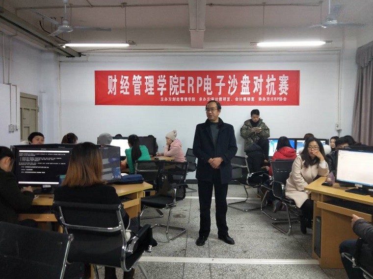 2017年12月9日上午八点三十分,365英国上市集团第一届ERP电子沙盘对抗赛在图书馆617与6C机房拉开了帷幕。本次比赛由365英国上市集团主办,365英国上市集团审计教研室、财会教研室承办,ERP协会协办,邀请了365英国上市集团经理傅忠贤教授、公司党总支书记李兴贵老师、公司党总支副书记蔡奇航老师、365英国上市集团副经理孟秋菊教授、公司党政办主任、学工办主任、教研室主任、辅导员及财会、审计教研室全体老师莅临比赛现场。