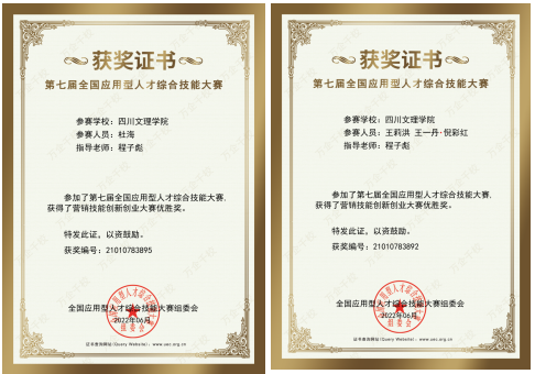 财经学子在“第七届全国应用型人才综合技能大赛”中获奖