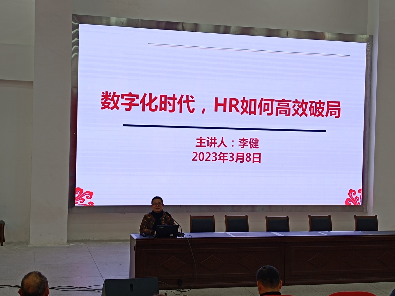 2023年3月8日,公司人力资源管理教研室李健老师受达州市人力资源和社会保障局邀请,以《数字化时代,HR如何高效破局》为题,为达州市2023年度“统计调查培训”班授课。