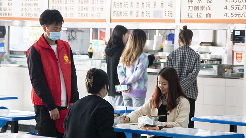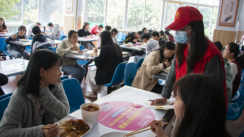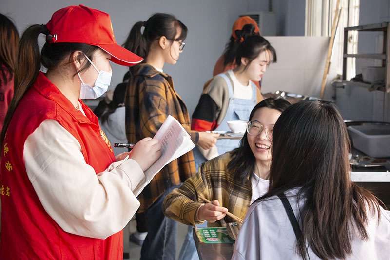 中午时分,一个个红衣志愿者集结在稻香广场上,领取属于自己的任务。临近中午,志愿者们就深入到各个食堂,耐心的收集同学们平时对食堂的意见,并将意见一条一条的记录在本子上,汇总归纳反映给各个食堂。志愿者们期望通过这种方式使食堂工作人员能更好的为同学们提供服务,并以此达到保护了同学们的权益的目的。