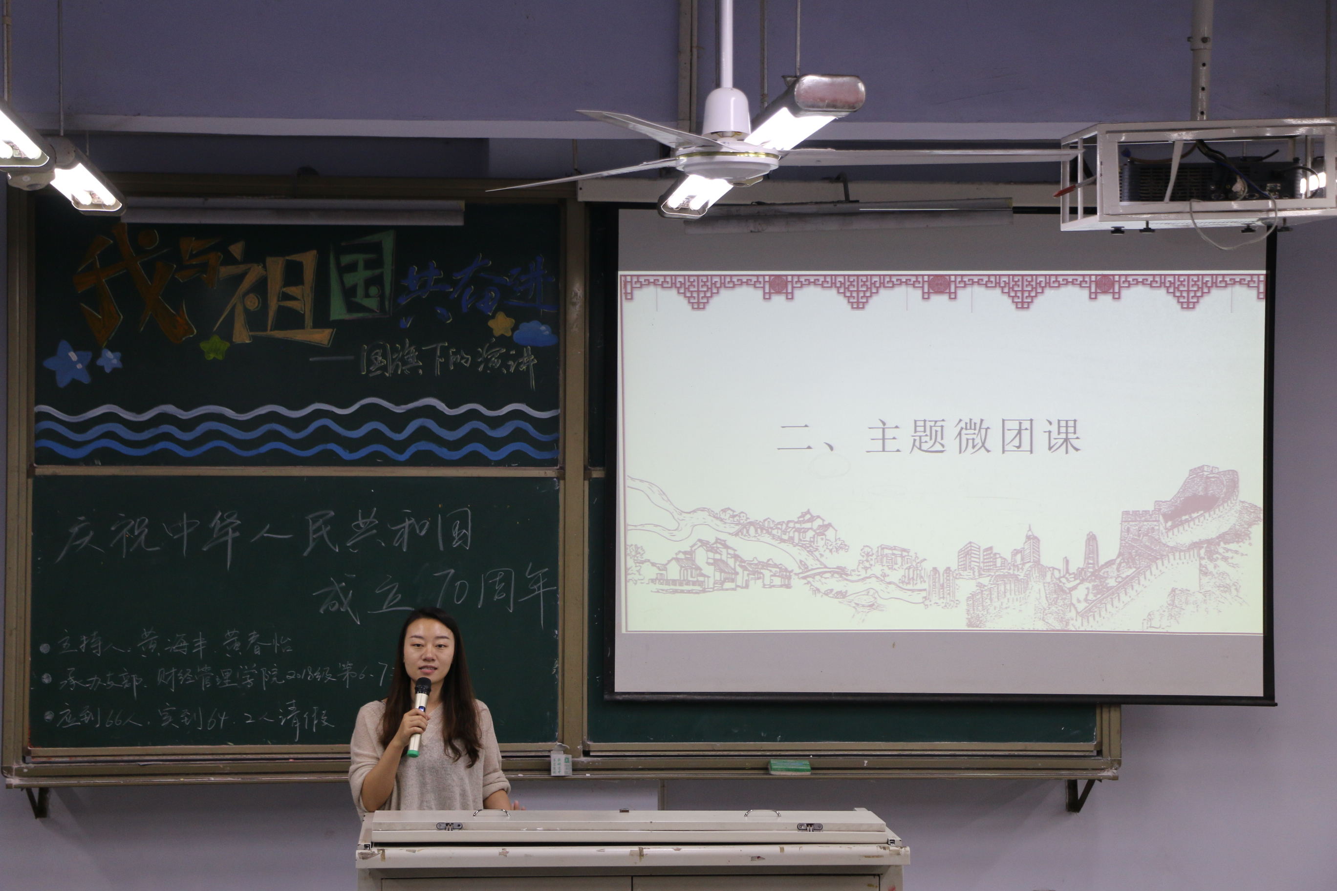 为隆重庆祝中华人民共和国成立70周年,响应习近平总书记年轻人要“自找苦吃”的号召,更好地激发大家吃苦耐劳,与祖国共奋进的主人翁意识,公司积极响应号召,于2019年9月16日晚上19时整在博文楼112教室召开以“我与祖国共奋进——国旗下的演讲”为主题的团日活动。