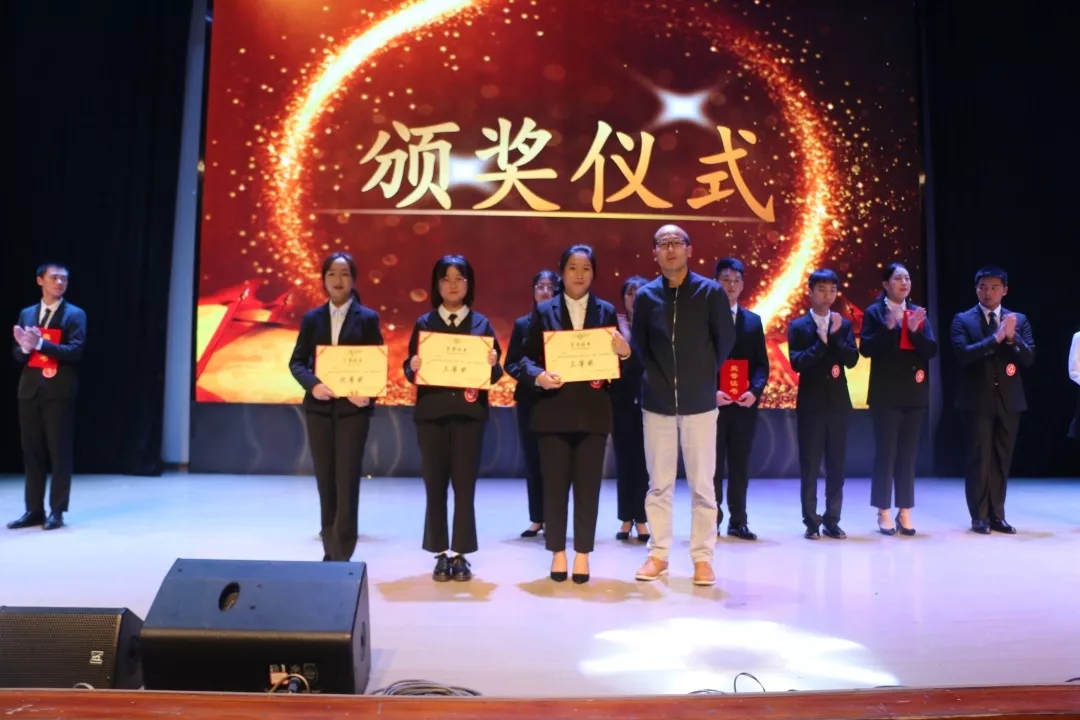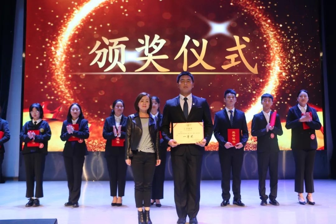 终于,最令人激动的时刻到来了。主持人依次公布比赛获奖选手,领导嘉宾依次上台为获奖选手颁奖合影。十二号选手以精彩的演讲赢得评委和观众的点赞,获得本次比赛一等奖。