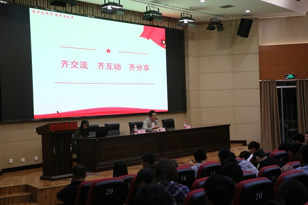 在随后的互动交流与分享环节,魏晓军老师和同学们就“如何提高干事积极性”、“如何提高同学们对各项活动的参与性”、“如何在工作中加强各部门的联系”等问题进行了交流讨论,并提出了相关意见和建议。