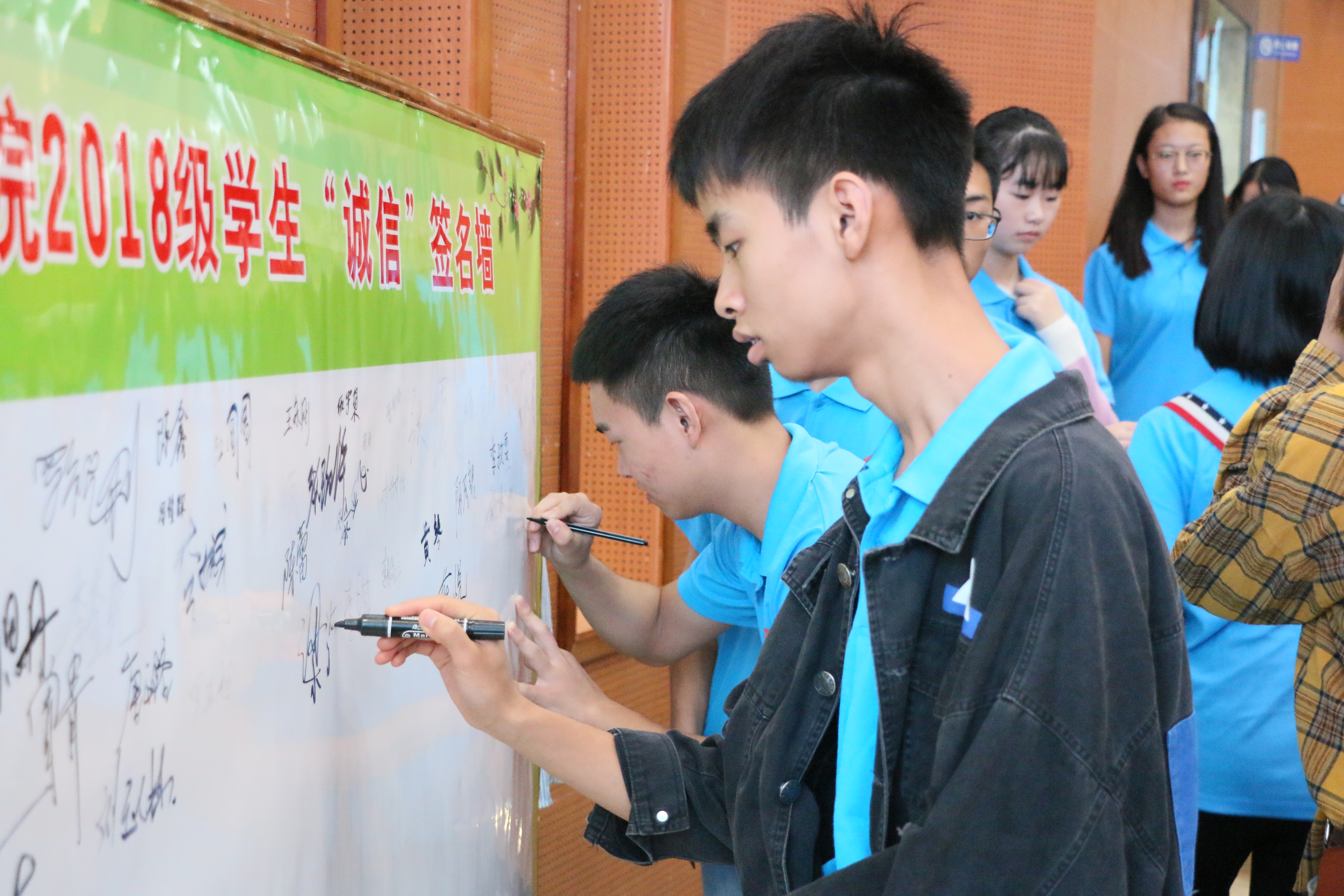 会议在公司组织的诚信签名活动中拉开帷幕,黄文曦老师讲述了自己的七年求学经历,告诫同学们调整落差心态,沉下心来,以积极的心态面对自己的新起点,并举出许多优秀的员工例子,表明我们公司的光明的就业前景。其次,她鼓励同学们培养好的学习方法与学习能力,积极考证,通过四六级考试,积极加入团总支员工会等。同时黄老师也强调了纪律意识、礼貌礼节、宿舍人际关系的处理及注重自我保护的重要性。