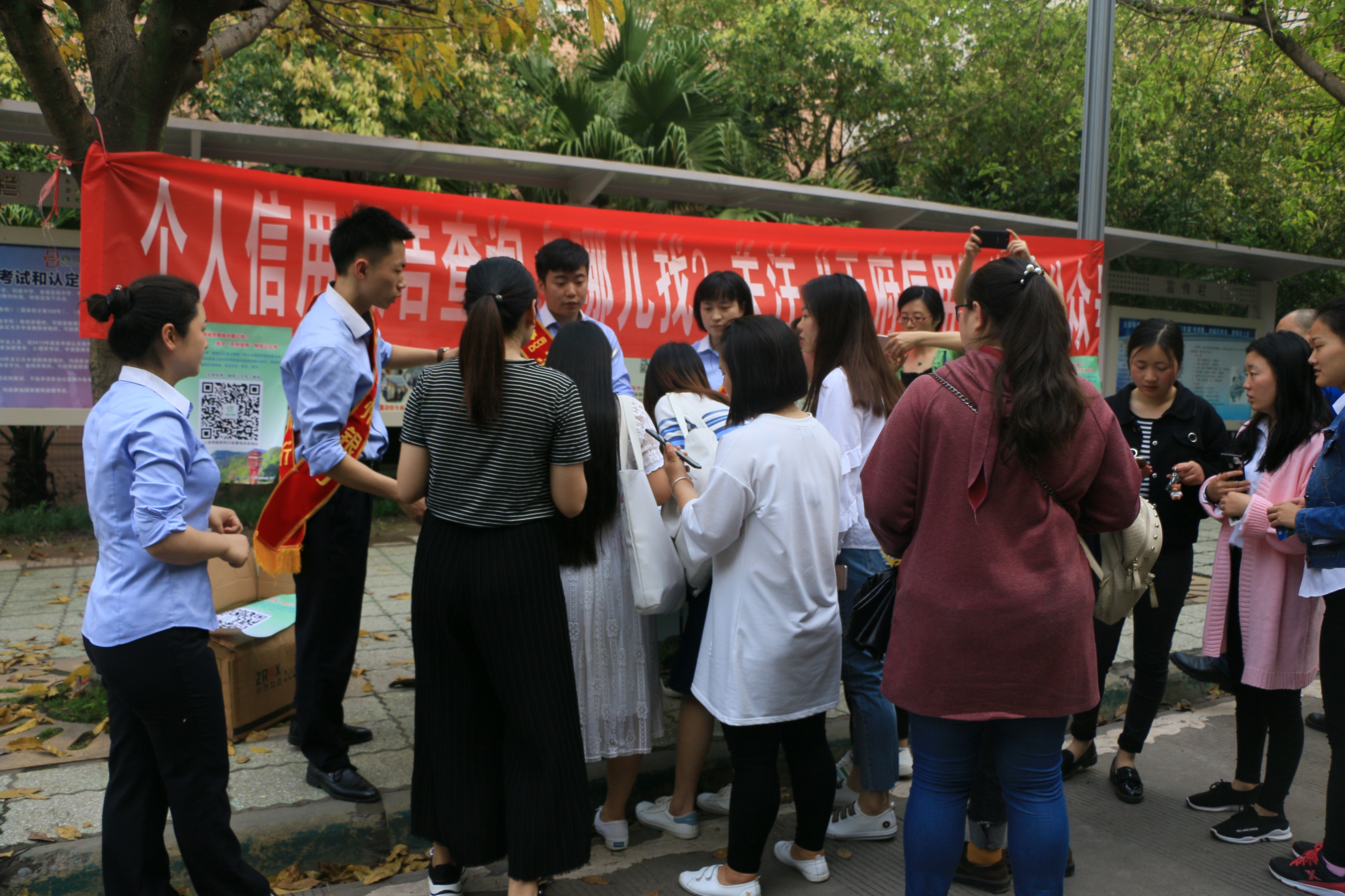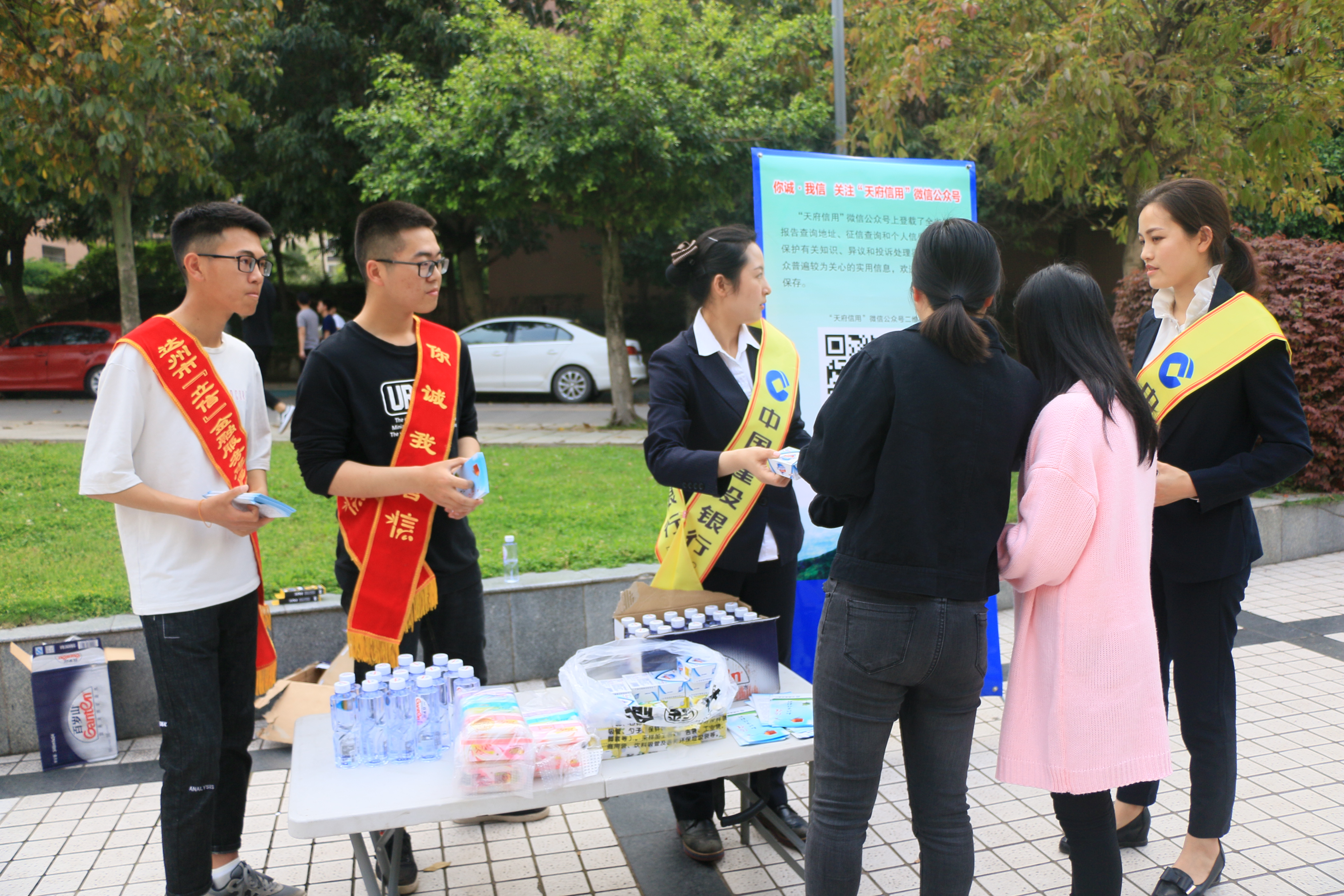 当天,各大金融机构工作人员在公司图书馆、食堂、宿舍、教学楼等5处人流较多地段设宣传点,挂起醒目的横幅标语,竖起精美的宣传展板,向过往的同学热情详细介绍了个人信用报告对我们生活的影响,并向同学们提供多种个人信用报告查询方法,耐心细致的讲解如何利用“天府信用”微信公众获取人民银行征信中心信用报告四川省查询点地址,了解征信法规、信用报告查询条件、纠错渠道、信用报告解读等相关知识。志愿者们则穿梭于来往人群中分发宣传单页,引导过往同学扫“天府信用”微信公众号并分发小礼品。