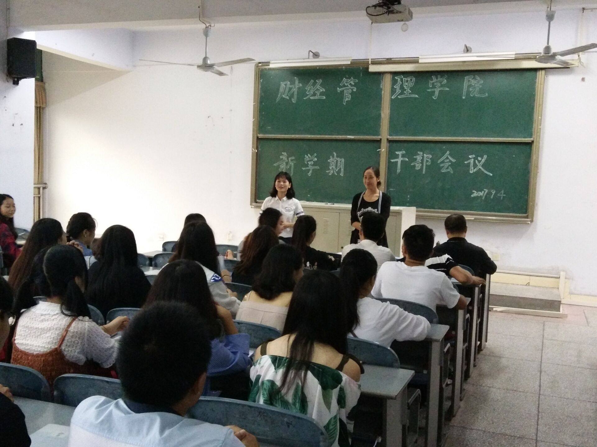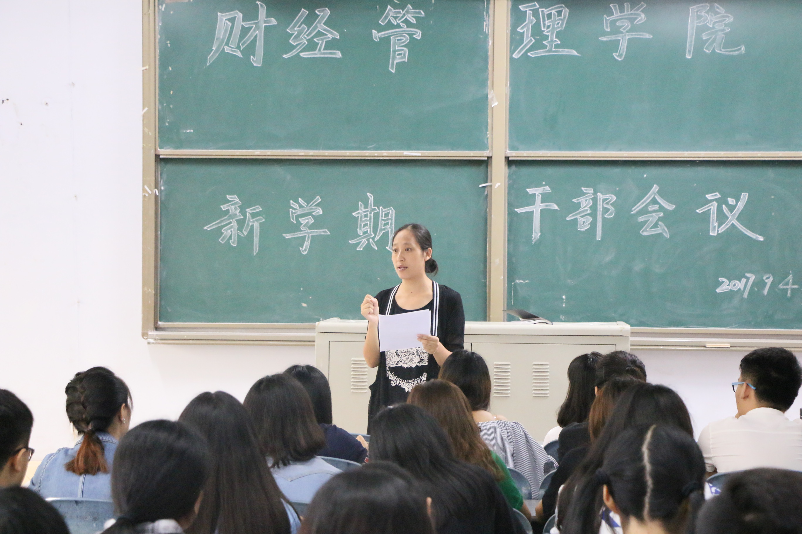 随后辅导员黄文曦老师向各位干部告知了本学期的工作计划,本周将办公室值班表排出,各干部协助领导老师进行迎新接待入学教育工作及班主任助理选拔工作,各部门制定计划,帮助新生适应老员工活、寻找归属感,并列出本学期各项活动,希望各干部配合,顺利开展各项活动。同时也向各干部提出要求:加强自身修养,提高自己的要求,注意交往中的礼仪,积极主动地投入工作,根据自身实际明确目标、制定计划,强调纪律意识。