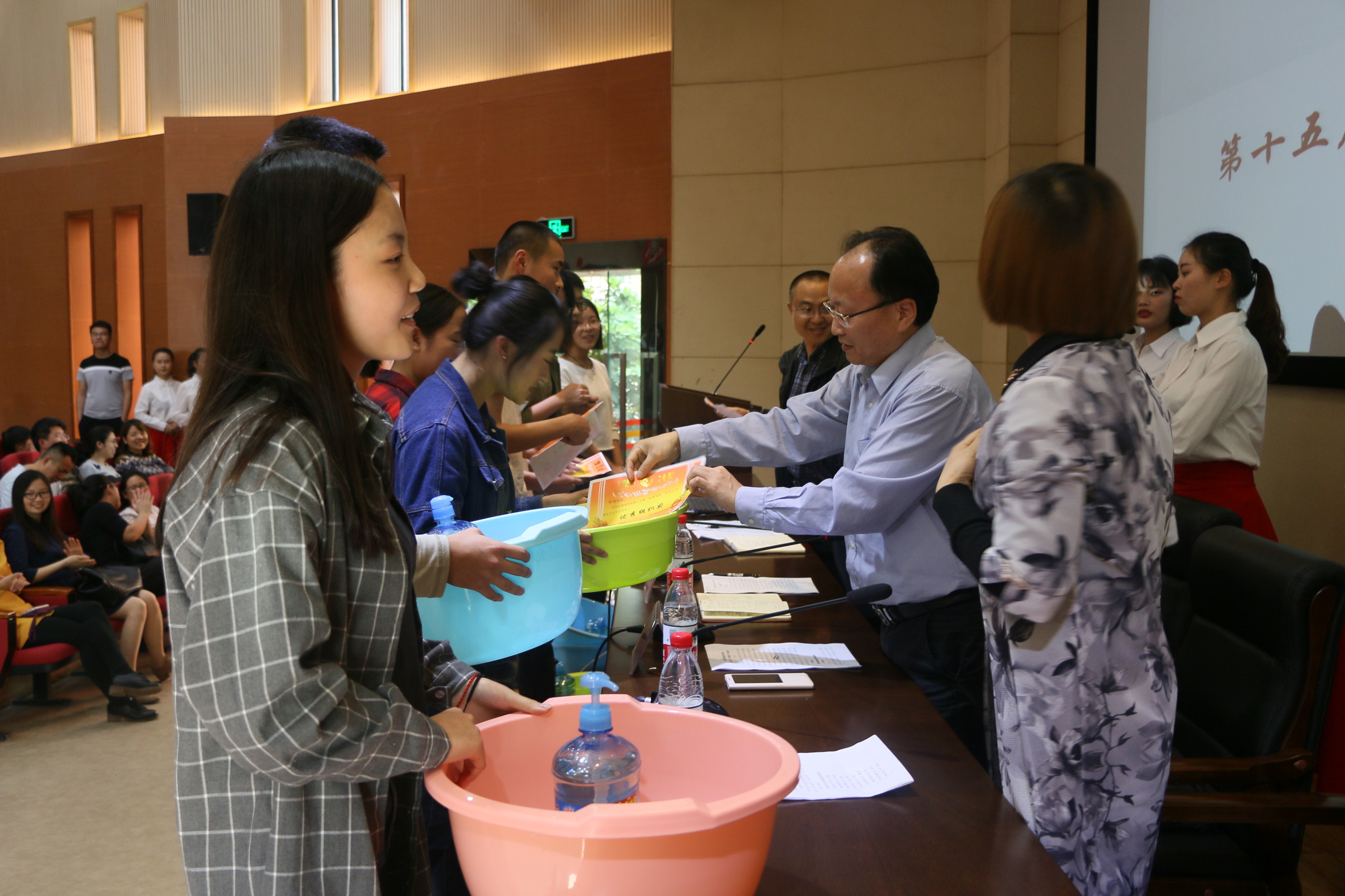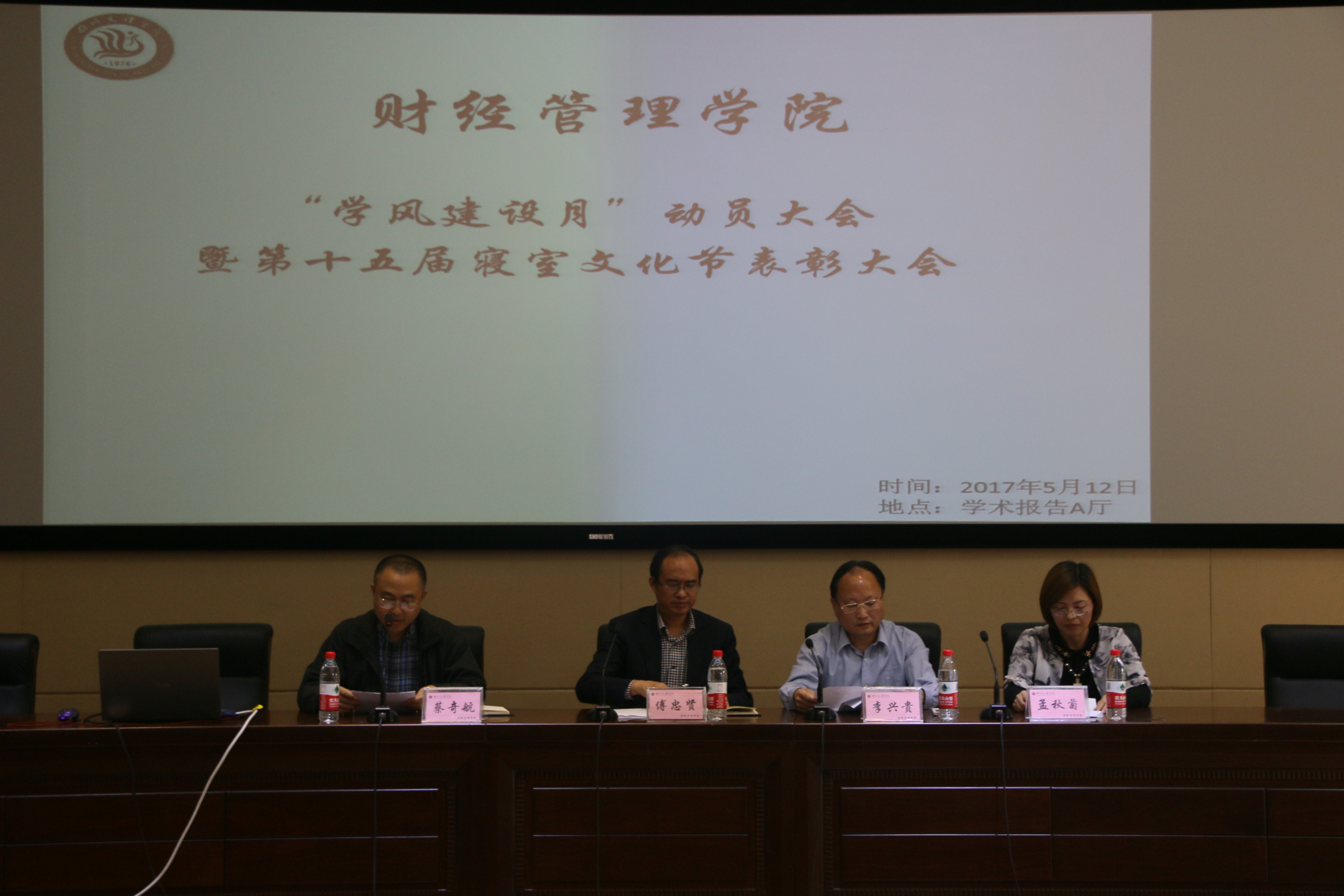 针对我院组建以来在学风方面所出现的问题,为使同学们树立科学、进步、积极的世界观、人生观和价值观,引导同学们积极进取、热爱学习,塑造具有“三心四能五复合”的高素质应用型、复合型人才,营造良好的育人环境和学习氛围,为公司“转型发展”和“审核评估”创造条件,公司党政决议举行学风建设月创建活动。同时,为了总结表彰寝室文化节举办以来,在一系列活动中涌现出来的优秀寝室及个人,以树立榜样,使团结和谐的寝室氛围在公司蔚然成风,为寝室文化节画上圆满的句号。公司于2017年5月12日17:00在学术报告A厅隆重举行“学风建设月”动员大会暨十五届寝室文化节表彰大会,将两个活动融合在一起举行,以期达到互相促进的作用。出席本次活动的领导老师有365英国上市集团经理傅忠贤教授、副经理孟秋菊教授、党总支副书记李兴贵老师、蔡奇航老师、审计学教研室主任苟聪聪老师、辅导员黄文曦老师、魏晓军老师及365英国上市集团全体任课老师,大一、大二全体员工及大三部分员工等六百余人悉数到场,党总支副书记蔡奇航老师任整场活动主持,活动分上下半场合计七个议程。