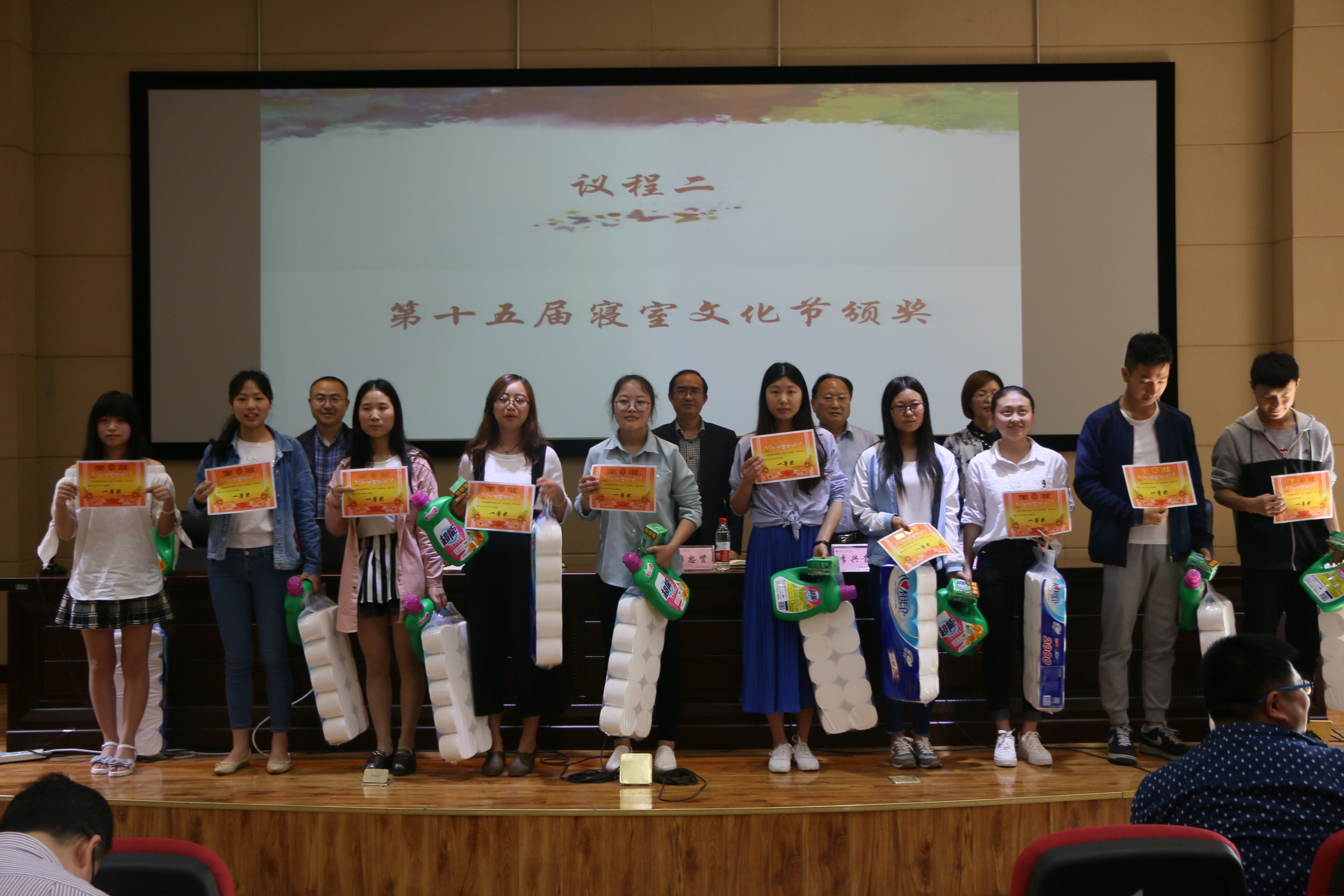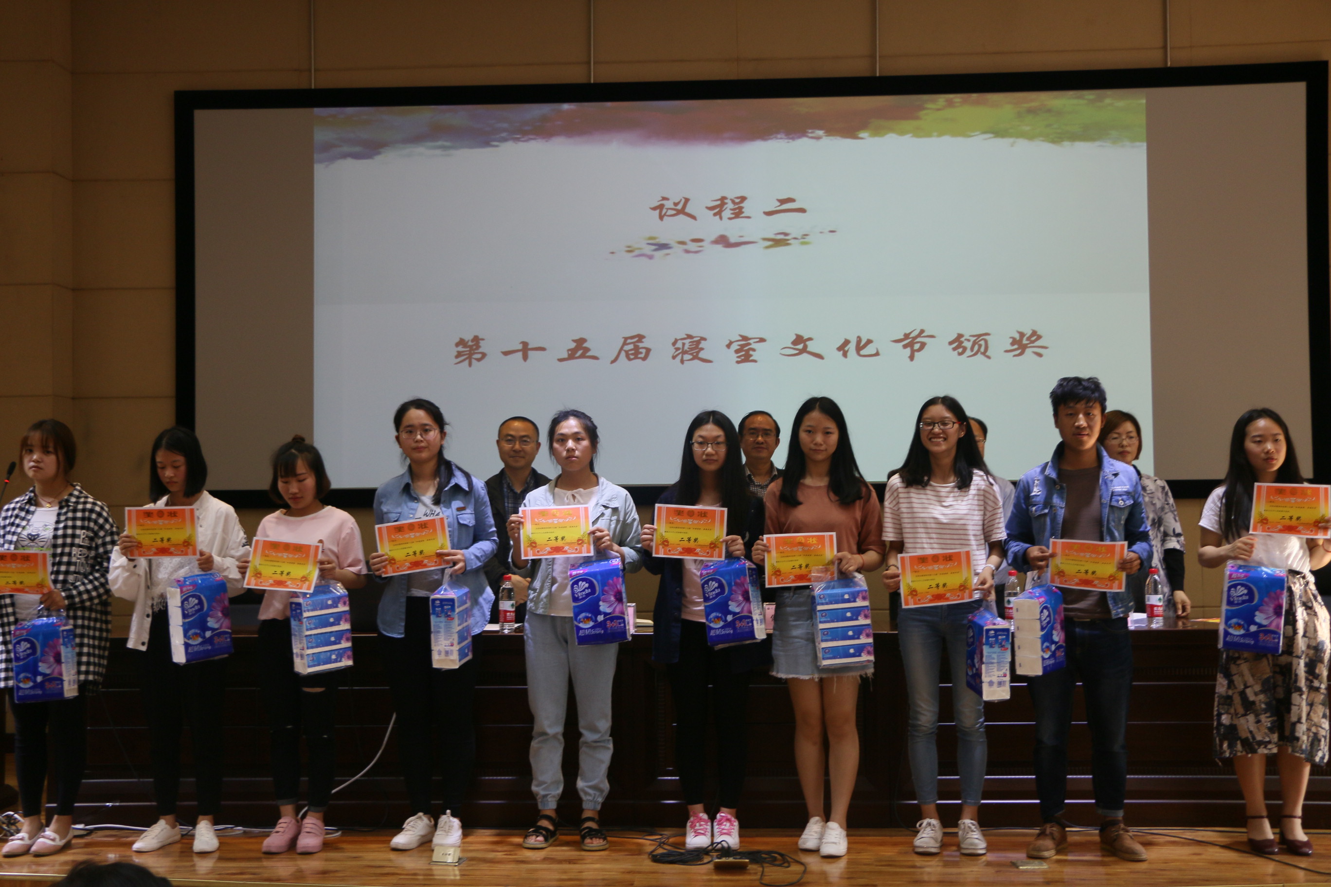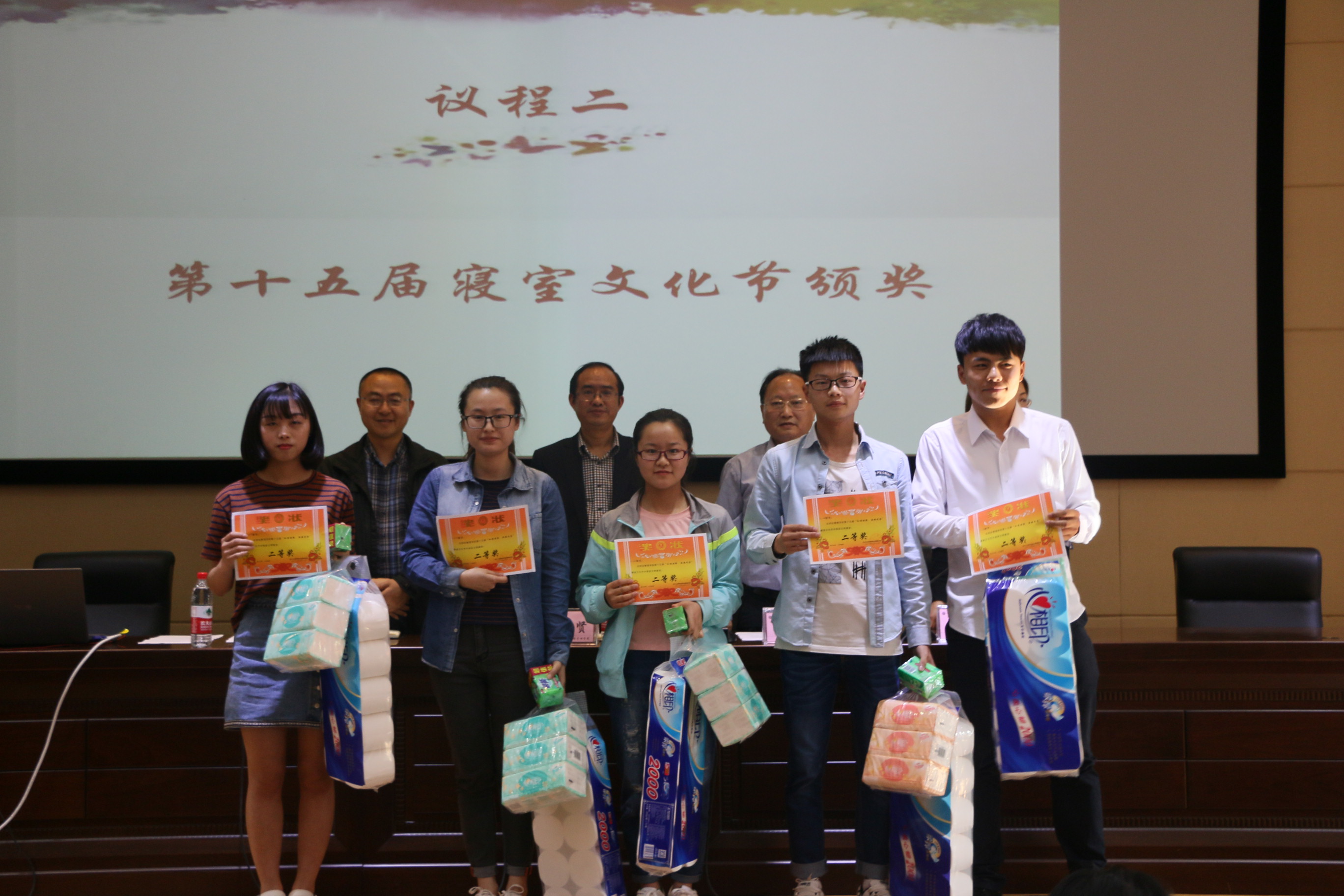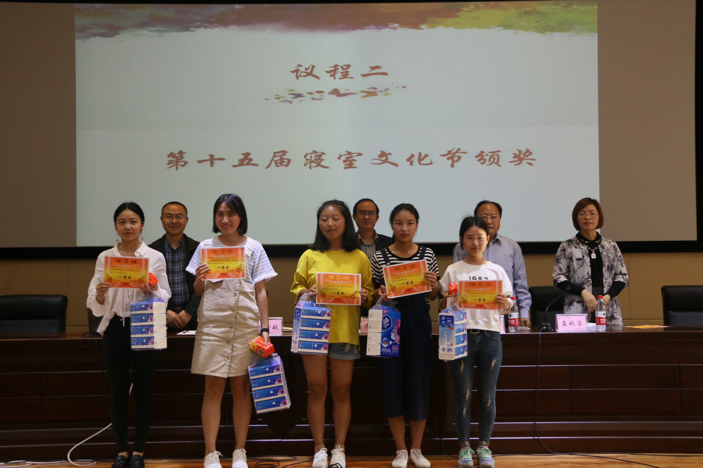 活动上半场举行十五届寝室文化节表彰大会,首先公司副经理孟秋菊教授对公司寝室文化节活动的开展表示肯定,接着由孟经理宣布了表彰决定和获奖寝室及个人名单,本次寝室文化节共有寝室文化风采展、三跃冲关赛、寝室排名三个方面的奖项,三个方面均设有一二三等奖。公司党政领导一一为获奖寝室隆重颁奖并热情合影留念,接下来优秀寝室员工代表李明珠做获奖发言,她提到:我们应当把寝室当做我们的第二个家,所以我们一定要爱护好我们自己将要生活四年的寝室,一定要定期清扫、节约用电,白天少开灯、晚上早关灯等生活经验。