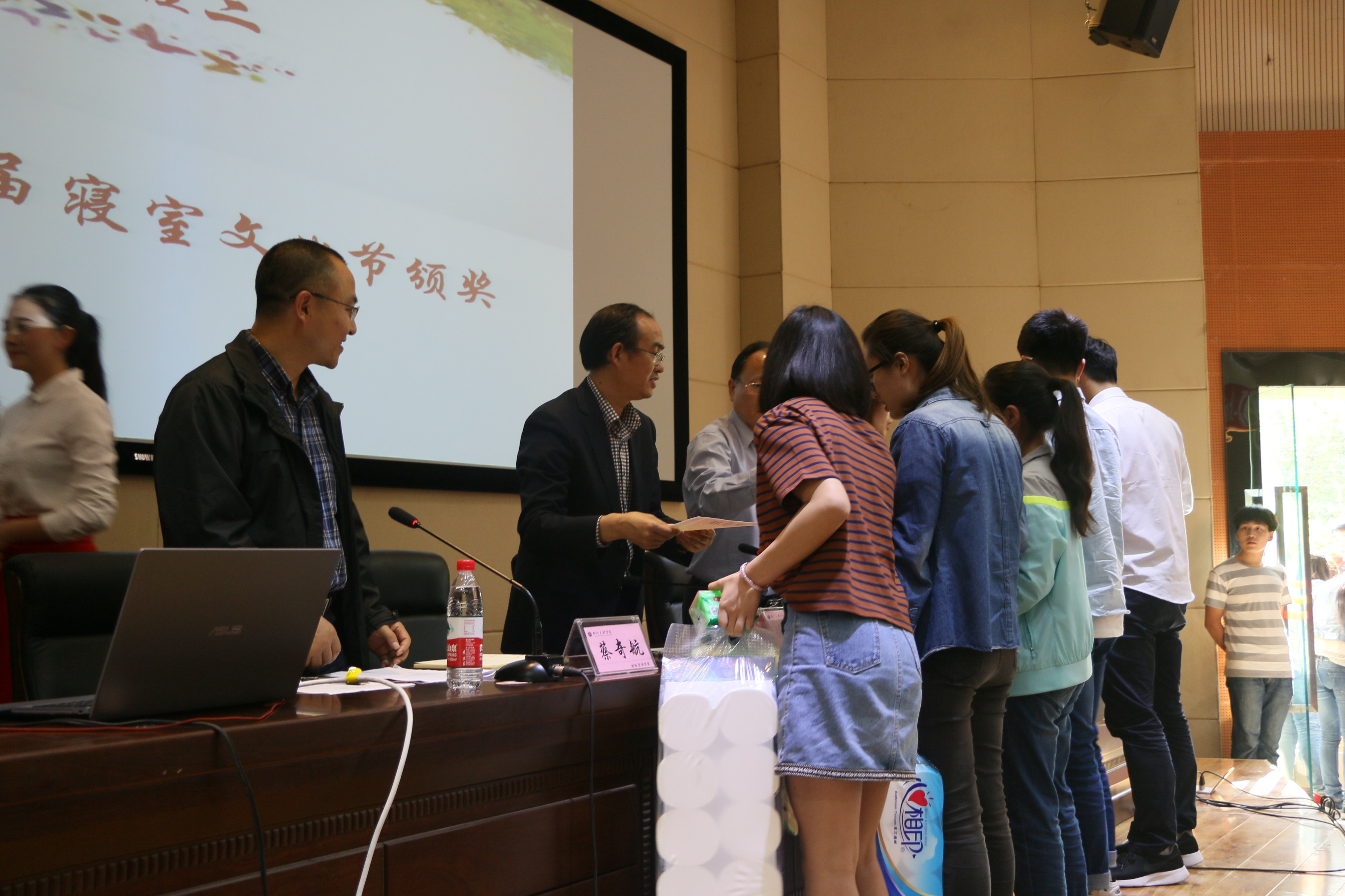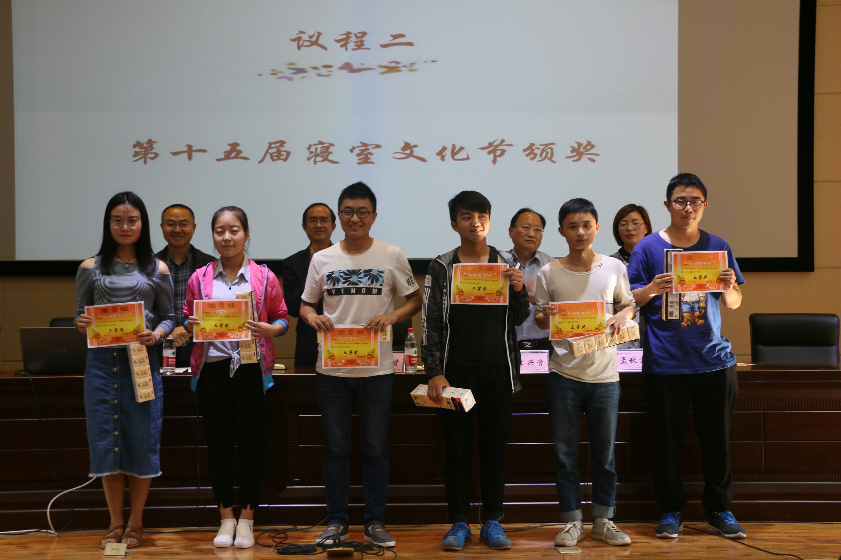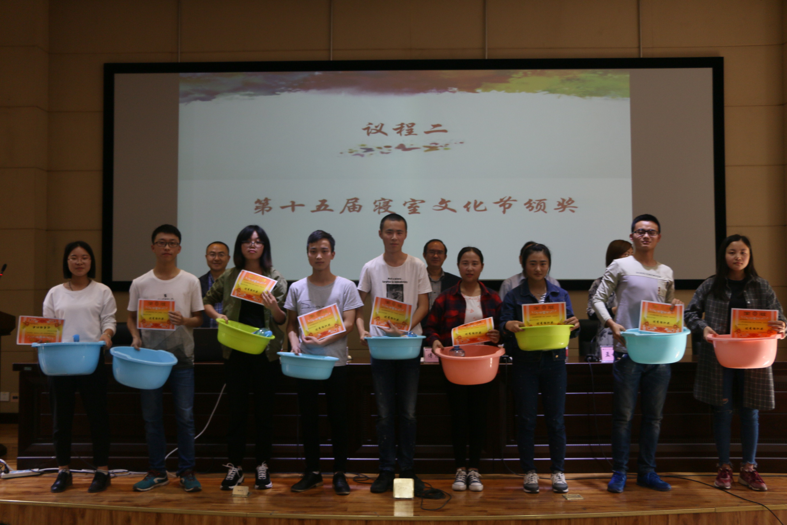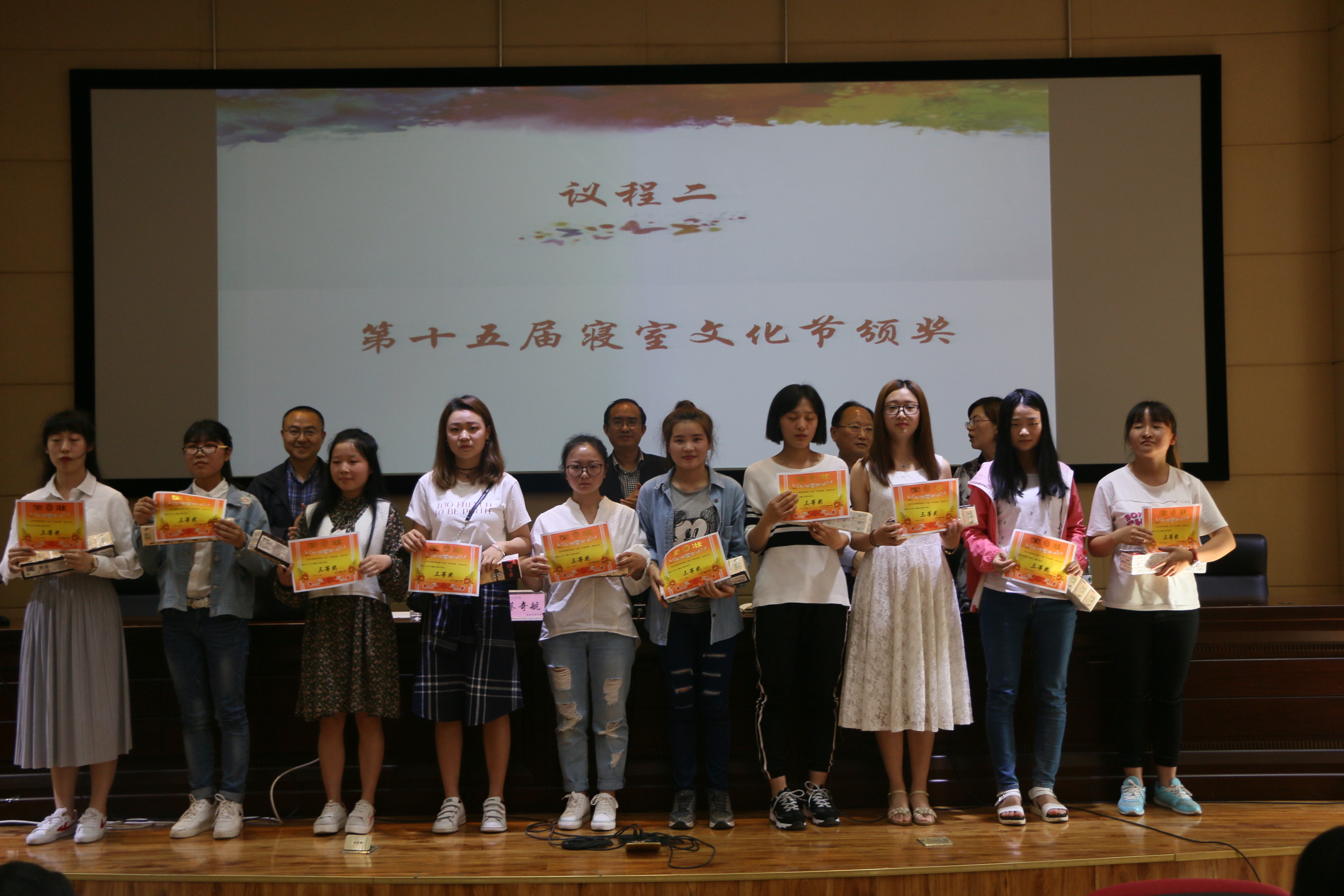 活动上半场举行十五届寝室文化节表彰大会,首先公司副经理孟秋菊教授对公司寝室文化节活动的开展表示肯定,接着由孟经理宣布了表彰决定和获奖寝室及个人名单,本次寝室文化节共有寝室文化风采展、三跃冲关赛、寝室排名三个方面的奖项,三个方面均设有一二三等奖。公司党政领导一一为获奖寝室隆重颁奖并热情合影留念,接下来优秀寝室员工代表李明珠做获奖发言,她提到:我们应当把寝室当做我们的第二个家,所以我们一定要爱护好我们自己将要生活四年的寝室,一定要定期清扫、节约用电,白天少开灯、晚上早关灯等生活经验。