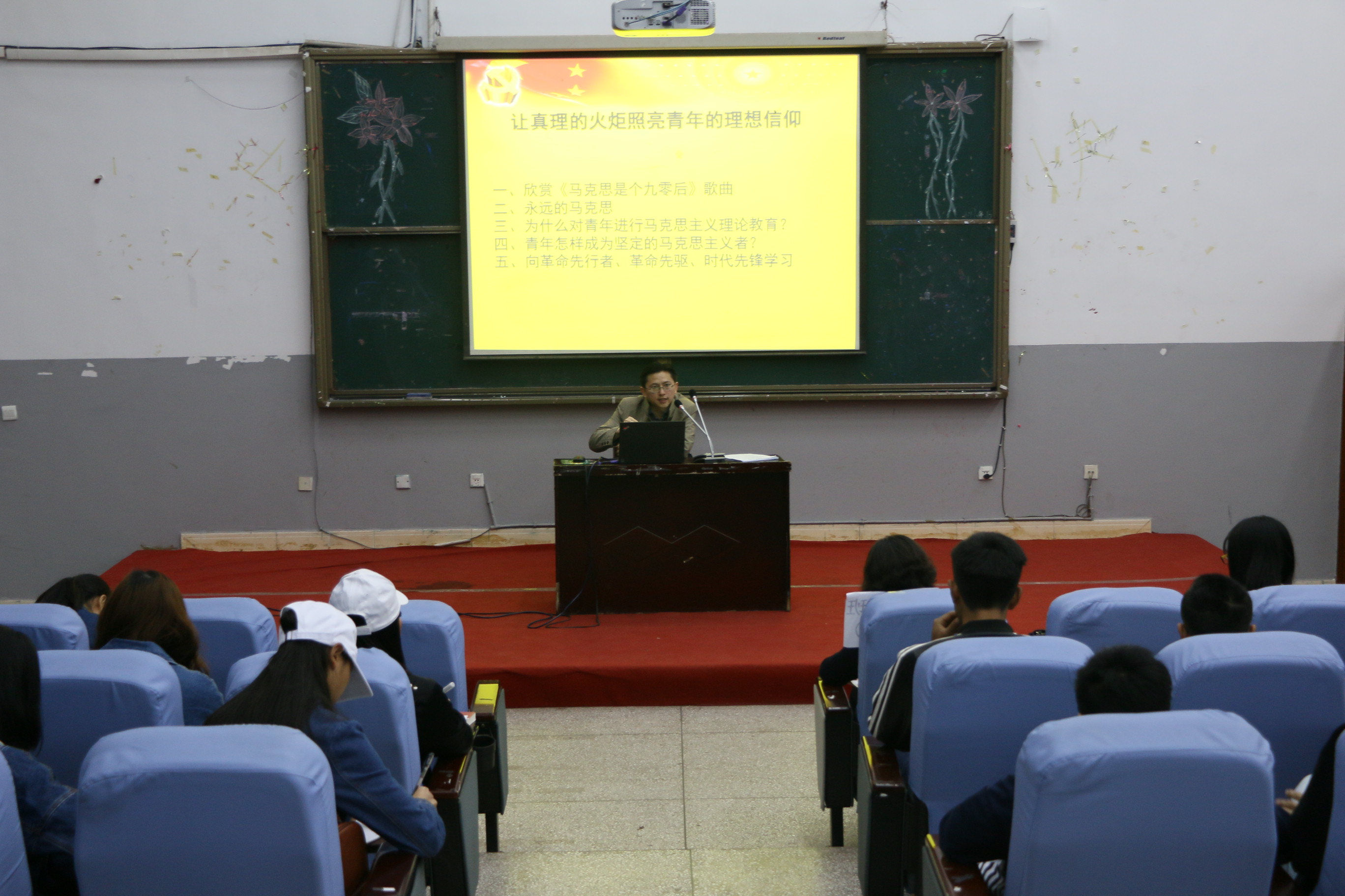 本次形势与政策专题讲座,促使同学们树立科学的理想信念,启迪对老员工活真正的向往,希望四年后在思想上学有所成、学有所获,在行动上对自己有所交代。