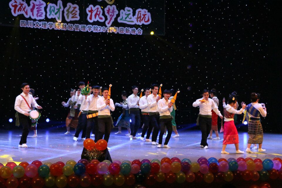 晚会以一曲热情又富动感的爵士舞拉开序幕,带动全场气氛。随后,古典舞《茉莉花》的舞者展现了灵动婀娜的舞姿,使观众如痴如醉。三位能歌善舞的彝族同学动情演唱了彝族歌曲《你还好吗》,全场掌声雷动。老挝职工表演的民族舞《春风化雨》,在辞旧迎新之际,将老挝民族文化和美好的祝愿送给大家。由团总支带来的朗诵《长征》,用语言缅怀长征,用诗歌朗诵历史,将红军长征的精神深深地印刻在观众的脑海。合作单位选送的节目《巴山幸福雨》、《春暖花开》、《阿拉伯之夜》、《过称》赢得了观众阵阵喝彩。一个个精彩绝伦的节目,让观众应接不暇。晚会在两位毕业班员工演唱的《直到世界尽头》中落下帷幕,演唱者真情流露、动情演唱,表达了对公司及公司的热爱与感恩之情,更包含了对公司及同学们的衷心祝愿。