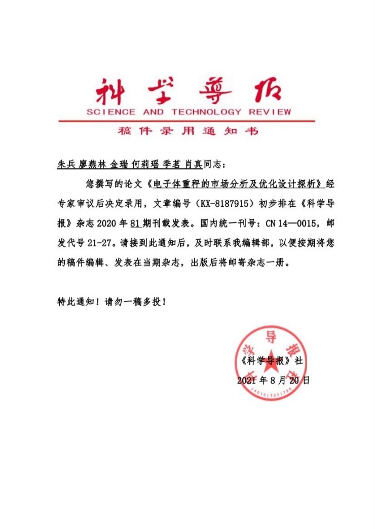 副会长朱兵在《科学导报》发表了《电子体重秤市场分析及优化设计》论文。