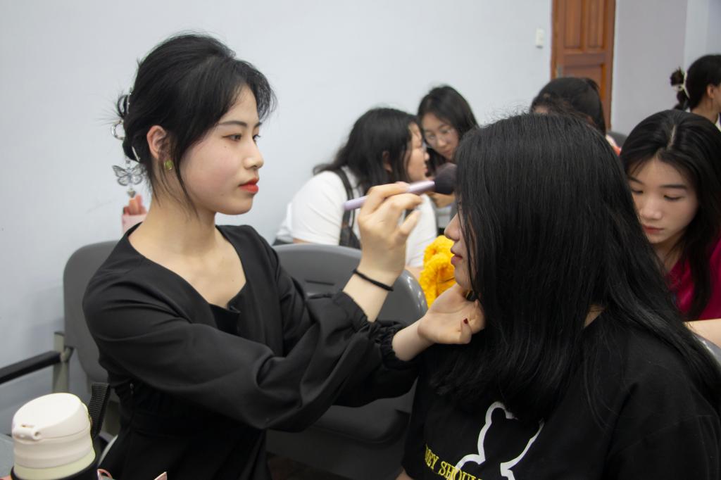 活动中,化妆老师先通过播放专业化妆视频,介绍了化妆的知识和技巧,着重讲解如何根据个人的皮肤特点选择化妆品。为了让大家理解的更加深入,化妆老师现场为挑选的模特进行化妆展示,通过护肤、打底、画眉、修容等步骤,结合脸部结构、皮肤肤质讲解化妆的各个步骤、技巧以及注意事项。在演示过程中,还介绍了化妆工具的选择。同学们也积极参与到化妆中,认真学习彩妆,纷纷自己动手参与,相互帮助,在实践中获取经验。通过细心的教导,同学们表示,学习到了很多化妆技巧,增强了自己的动手能力。活动内容时尚欢快,通过不同风格、不同类型的彩妆展示,展现了多面的老员工形象。